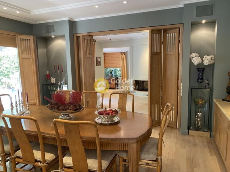 Ekali, Detached house in amazing condition, 680 sq.m. , on a plot of 1000 sq.m., luxury construction with heated outdoor pool, 5 bedrooms (2 Master), 4 bathrooms, 3 WC, 1 kitchen, 4 closed parking spaces, built in 1998, overlooking the forest, near a Super Market & Schools. In 4 levels Semi-basement: Playroom bright with exit to the garden and the pool. Large living area, guest house with 2 bathrooms. Many auxiliary spaces such as the laundry room, 3 warehouses, boiler room and engine room, parking for 4 places and generator. Ground floor: Very nice entrance with an imposing door leads us to an entrance hall, two living rooms, with a double-sided fireplace. The living rooms overlook the garden and pool through large openings. Large bright office, dining room and independent kitchen fully equipped with granite countertop, island with worktop. The kitchen has an exit to the garden. 1st floor Large living room with office and 4 bedrooms. Two of them are master with ensuite bathroom, while the remaining two share a common bathroom Attic: Single space suitable for everyone. Details: Elevator, Parquet & Tile Floors, Aluminum Frames, Security Door, Alarm, CCTV, Oil Heating, Store Rooms, Fireplace, Jacuzzi, Night Power, Electrical Appliances, Large Playroom, Internal Staircase, Double Glazing, Screens, Awnings, Verandas, BBQ, Drilling , Underfloor heating, Air conditioning, Solar, Boiler, Lawn, Automatic Watering, Swimming pool, Garden 700 sq.m., perfectly landscaped garden with lawn, many trees and plants, Wide American oak floor, Two daikin heat pumps (heating and cooling ), Weissman boiler (heating - cooling air conditioning with air ducts, Diesel generator soundproof olympian caterpillar 30 kva /24 kw. Two pumping stations with double rain pumps, Drilling with grundfoss pump & external tank, Closed parking for 4 spaces heated and ventilated with ramp, Automatic remote controlled parking and ramp doors. 5 x 10m infinity pool with hydromassage and heated electric sliding cover, Perimeter bundles in the garden for burglar alarm external and internal surveillance cameras.