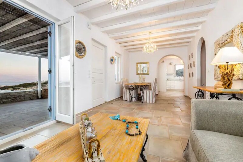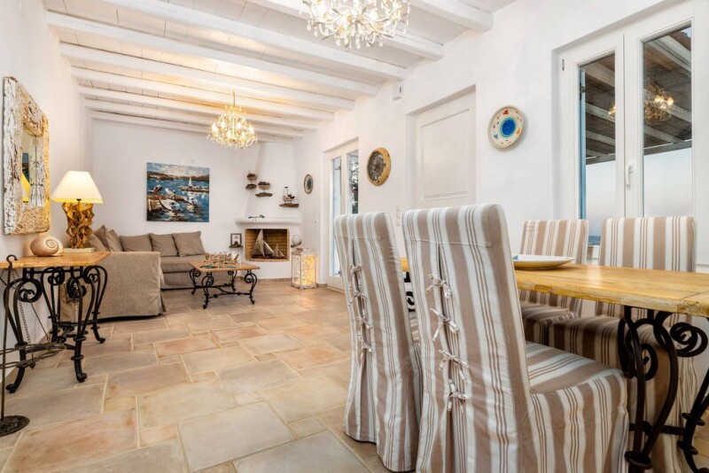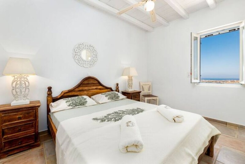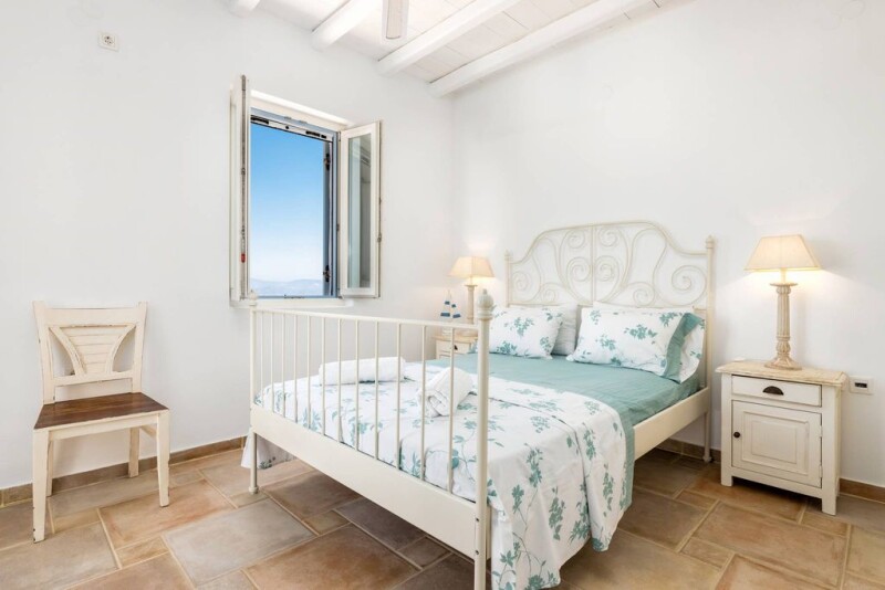 Nested in the cosmopolitan area of Naoussa, in Kantinelies, this whitewashed building is a horizontal ownership of 145 m2 with exclusive use of land 2.724 m2 in a plot of 11.000 m2. The house is spacious and luminous with unlimited view of the vast expanse of the Aegean sea. Situated in a quiet area, just a few minutes away from the vibrant center of Naoussa, it offers easy access to the lively activities, shopping and fine dining the area has to offer. Upon entering the house from the main entrance (the house features two entry doors), you are welcomed into the spacious living area, with fireplace and an adjacent dining space. The open kitchen concept and the small storage room, ensure practicality and organization. A generously sized bedroom with a huge closet and a well-appointed bathroom complete the ground level layout, offering both comfort and convenience. The inside stair leads to the first floor, where you will find two extra bedrooms situated apposite one another, each equipped with big closets. A roomy bathroom on the level, provided ample space and privacy for the residents. Both floors feature large verandas with unblocked sea views, perfect also for enjoying the local flora and fauna. The property has underfloor heating, is in excellent condition and is sold furnished. This property, situated in the cosmopolitan area of Naoussa, is suitable for year-round residency and presents an attractive opportunity to invest in a house in the beautiful island of Paros.