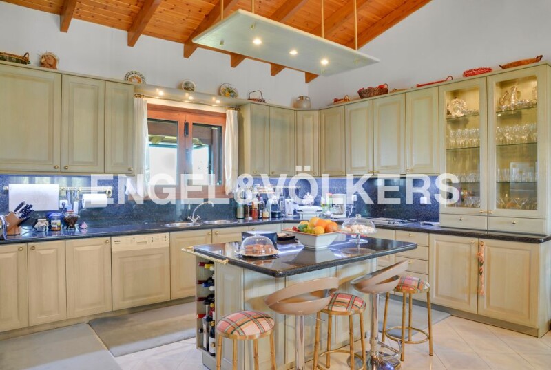 Edefining the meaning of luxury and privacy, this small villa offers elegant and elitist living. Driving through the gated villa you are discovered the landscaped manicured surrounds with the orchard and the pool, facing the elevated residence. Entering the house you are overwhelmed by the abundance of space, with the impressive living room with fireplace, dining room and in the background the island-kitchen, under the tiled roof in a single layout. On this ground level you will come across the comfortable master bedroom with boudoir, desk, large bathroom with jacuzzi and sauna. Going out on the balcony the orchard confirms that you are in Greece. A second bedroom overlooking the pool from its own small terrace, while the WC and the nautical staircase leading to the attic, complete the floor. The small attic serves as a guestroom or gym. Outcoming from the house, you face the large pool with its own bar and shower, while on the left path you will find the fully equipped BBQ with its own WC, under the shade of the huge camellia tree. Continuing on the grass pavement, you arrive at a regular size private tennis court. Built in 1981 and completely renovated in 2013, with exposed wooden tiled roof, fully air conditioned, equipped with quality appliances and luxury furniture, with high security system and underground garage with many uses. On this small villa that ticks all the boxes, the summer gatherings with family and friends will never be the same. Special features: • Fully equipped and furnished • All seasons holiday home • Absolute privacy Location: Kato Achaia is a small municipal on south of Patras, while it has all the necessary services. Niforaika, Aliki and Kato Alissos are seaside resorts of the area with direct access from Patras too. Features: residential area, with not only holiday residences, a known summer destination to the inhabitants of Northern Europe who loves to live in Greece. Accessibility: after the completion of the highway Patras-Pyrgos that starts soon, the distance from Patras will be only 20' driving or by train. Possibilities: In the area developed both holiday homes and hotel resorts. However, due to the upgrade of transportations, there is of particular real estate investment interest. Distances: • Athens International Airport - 267km • General Hospital of Patras - 30km • New Port of Patras - 21km • Industrial Area of Achaia - 14km • Marina Aliki’s - 1.1km.
