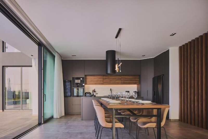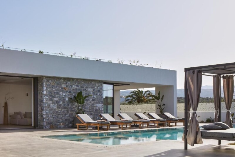 Situated in a prime location just 850 meters from the sandy beach and a short drive to the bustling town of Rethymno, this Villa offers an unparalleled blend of sophisticated architectural design and modern comfort. With its array of unique amenities such as a rooftop balcony with a hot tub, spacious pool, pickleball court, and outdoor kitchen with a gas BBQ, the villa ensures a seamless and unforgettable escape in the heart of Crete’s stunning coastline. Spanning 230 square meters, the villa spreads across two levels and can comfortably accommodate 10 guests in its 5 bedrooms. Indoor Layout: Ground floor Step inside the ground floor from the main entrance to find an open-plan living area adorned with plush sofas and armchairs, centered around a 65” Smart TV with a PS5 for your entertainment needs. Adjacent is the indoor dining area, comfortably seating ten guests, and a fully equipped kitchen featuring a sleek kitchen island design and modern amenities including a wine cooler, Nespresso machine, and an American-style double door fridge. Floor-to-ceiling windows seamlessly connect the interior with the outdoor pool area, creating a seamless indoor-outdoor living experience. A convenient laundry room with washer-dryer facilities is also found on this floor. On this level, there are three inviting bedrooms: – Bedroom 1: 2 Single beds (0.90 x 2.00 m) that can be transformed into a queen-size bed by putting a mattress topper, 50” Smart TV, ceiling fan, access to the pool, en-suite bathroom with shower. – Bedroom 2: King size bed (1.60 x 2.00 m), 50” Smart TV, ceiling fan, en-suite bathroom with shower, access to the back yard. – Bedroom 3: King size bed (1.60 x 2.00 m), 50” Smart TV, ceiling fan, en-suite bathroom with shower, access to the back yard. First floor Ascending the staircase to the first floor, the remaining two bedrooms are found: – Bedroom 4 (Master bedroom): 2 Single beds (0.90 x 2.00 m) that can be transformed into a queen-size bed by putting a mattress topper, 50” Smart TV, ceiling fan, access to private balcony, en-suite bathroom with shower. – Bedroom 5: King size bed (1.60 x 2.00 m), 50” Smart TV, ceiling fan, en-suite bathroom with shower, access to balcony. Furthermore, access the rooftop balcony on this floor to discover the ultimate relaxation spot, complete with a hot tub for six people for indulgent soaking sessions under the sun or stars, and a sitting area with VONDOM furniture, offering spectacular views of the sea, Psirolitis and White mountains. Whether unwinding with a glass of wine or enjoying lively conversations with loved ones, this rooftop retreat promises moments of serenity and bliss. Outdoor area The exterior of the Villa covers 1,000 m2 and offers many facilities, including: – A private, 70 sq.m. ecological salt water swimming pool, 1.4 m deep with step access, including a child pool, 0.50m deep. This pool uses salt water electrolysis and can also be heated for the entire stay with an additional daily charge, upon request. – The pool area is equipped with a gazebo, 6 sun beds, 2 bean bag loungers, a poolside shower and 4 umbrellas – Outdoor kitchen with a gas BBQ facilities – Οutdoor dining area for 10 under a shaded pergola – Οutdoor sitting area – Ping pong table – Pickleball court – 2 bicycles (1 adult size and 1 child size with helmets) – Parking space for 4 cars inside the villa premises. – The whole Villa is fully fenced and has a gated entrance offering security to our guests. What makes this Villa so special: – Privileged location: The villa is located only 850 m away from the nearest beach and other amenities where you can enjoy going around. – Rooftop Relaxation Oasis: Experience unparalleled luxury on the rooftop balcony, featuring a hot tub and stylish VONDOM furniture. Enjoy sea view and surrounding landscape while indulging in moments of pure relaxation under the sun or stars. – Active Lifestyle Amenities: Stay active and entertained with a variety of facilities that the villa offers, such as a pickleball court and ping pong table – perfect for friendly matches with family and friends. – Luxurious Bedrooms: The villa boasts sophisticated architectural design and is built with high quality. Retreat to one of the five spacious bedrooms, each boasting its own en-suite bathroom for added privacy and convenience. With comfortable beds, ceiling fans, and access to outdoor spaces, relaxation comes naturally in these elegant sanctuaries. The total villa indoor space is 230 sq.m. + 50 sq.m. basement.