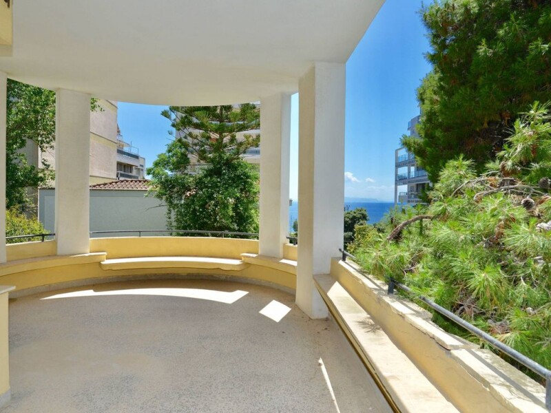 A unique estate of total 705 m2, surrounded by a garden full of trees in a corner plot of 756,71 m2, in the grandeur area of Paleo Faliro, only 170 m. from the beach with magnificent views over the Argosaronic Gulf and with an influence of Bauhaus modern architecture. The estate combines two independent residences. The 1st residence of 336 m2, was built in 1933, consists of the ground floor, with a spacious living area, marble fireplace, with direct access to the circular veranda, dining room, kitchen, WC and a wooden staircase that leads to the 1st floor, with 3 bedrooms, two bathrooms, and ancillary areas. In the basement of 124,98 m2, there is an independent apartment with a living room, bedroom, kitchen, and a bathroom, having access to the garden and interior staircase which communicates with the ground floor. The 2nd residence of 243 m2 was built later in 1980, statically independent of the building, and with the advantage of an elevator, consists of the 2nd floor with a spacious living area with a marble fireplace, direct access to the circular veranda, dining area, kitchen, 2 bedrooms, WC and ancillary room. A wooden staircase leads to the 3rd floor, where there is a bedroom, kitchenette, WC, and a large terrace with a superb sea view. Renovation is needed.