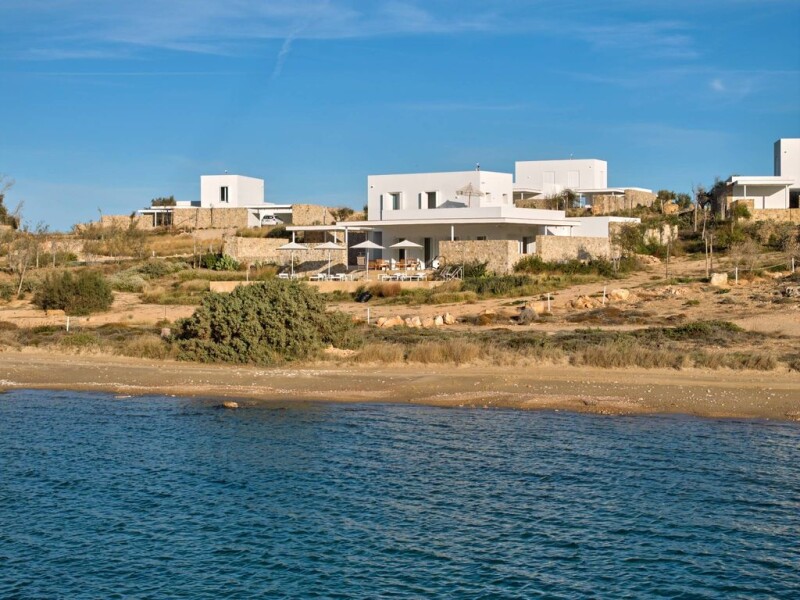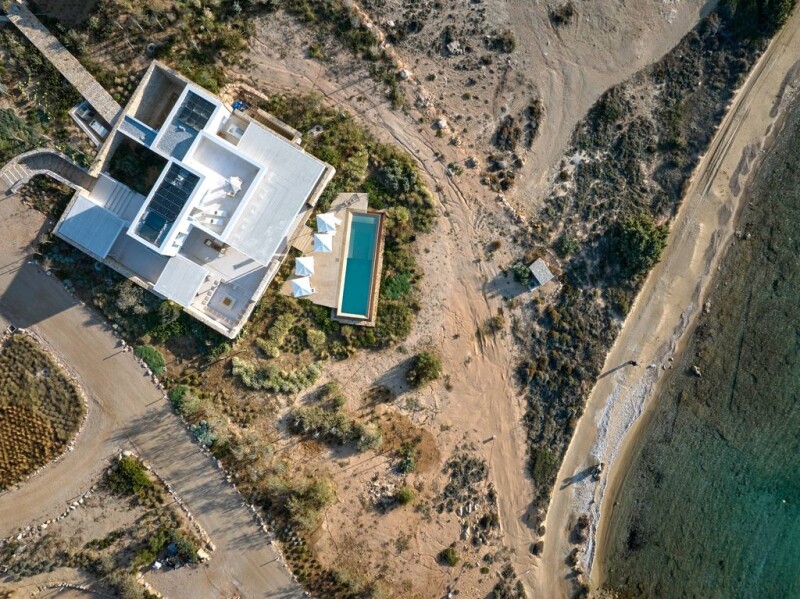 On a scenic peninsula just minutes from the village of Naoussa, is this splendid collection of six, detached villas. Each of the villas offers direct access to a sandy beach, providing an idyllic coastal retreat. Designed to meticulous standards, these residences span from 460-550sqm, featuring sleek minimalistic architecture and contemporary amenities crafted to cater to refined tastes. Incorporating sustainability features like solar panels for electricity generation, a VRV system, and underfloor heating ensures efficiency and comfort throughout the year, making them ideal for year-round living. Each villa is equipped with cutting-edge technology, including a KNX Smart Home System, CCTV cameras, and an integrated alarm system, providing unparalleled security and remote accessibility. Every home features a luxurious primary en-suite bedroom on the top floor, complete with its own balcony for breathtaking views. On the ground floor are two additional bedrooms, an open-plan kitchen and inviting living room leading directly through to the outdoor area. Head downstairs to the lower level, where there are three more bedrooms, each with a private garden. Step outside onto the expansive verandas and manicured gardens, where you can unwind by the private pool with a jacuzzi or gather around the built-in fire pit. Here, you can soak in panoramic vistas of the sea from sunrise to sunset. Experience unforgettable moments in this exceptional seaside sanctuary, set to be delivered in May 2024. The buyer of this property is eligible for the Greek Golden Visa Program.