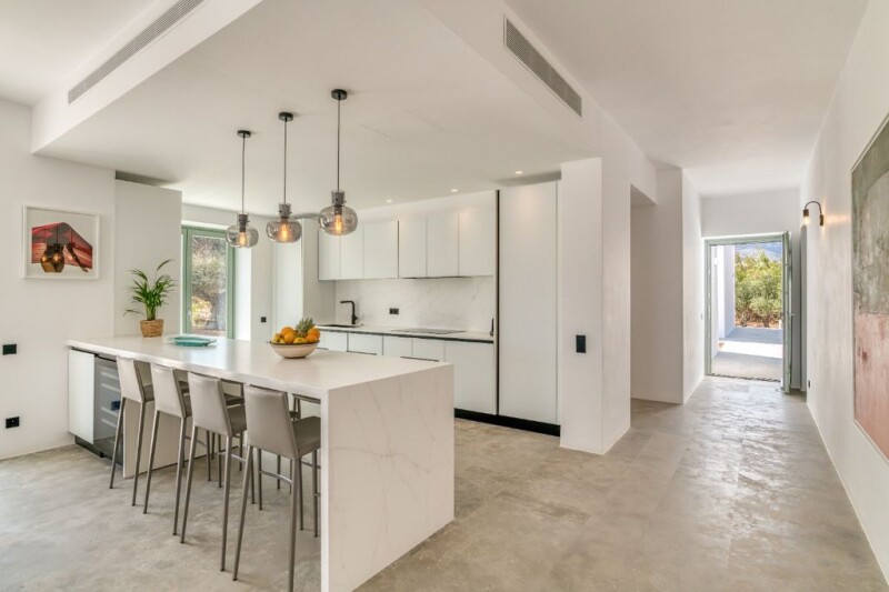 This fantastic villa is located in the enchanting coastal area of Pyrgaki and represents an exceptional blend of luxury, tranquillity and natural beauty with modern architecture. The villa is less than 100 meters from the sea and has 4 bedrooms with breathtaking sea views from every room. The property is easily accessible from Dryos and the popular Golden Beach is only a few minutes away. Surrounded by lush fauna and flora, against the backdrop of the sea, this magnificent vacation villa offers its residents the privacy they need for a relaxing vacation by the sea. This property is not only a home, but also an investment in an incomparable lifestyle that seamlessly combines a magnificent location, impressive views and plenty of elegant luxury. This premium Cycladic-style villa is a very special investment in the natural seclusion of Pyrgaki.