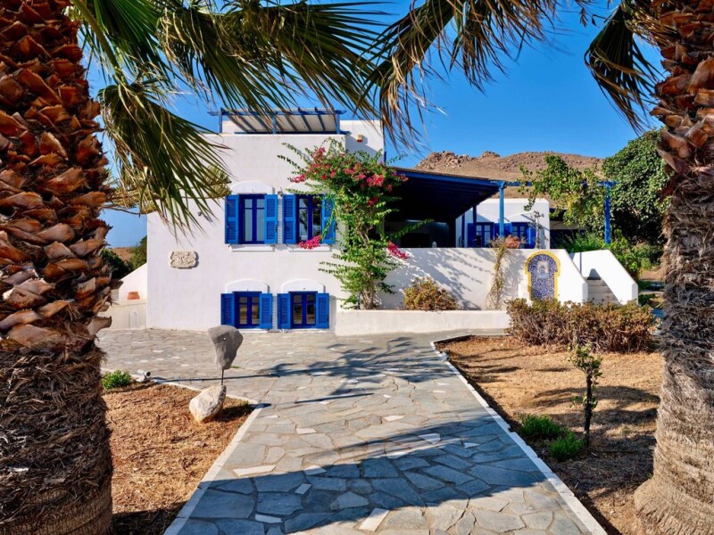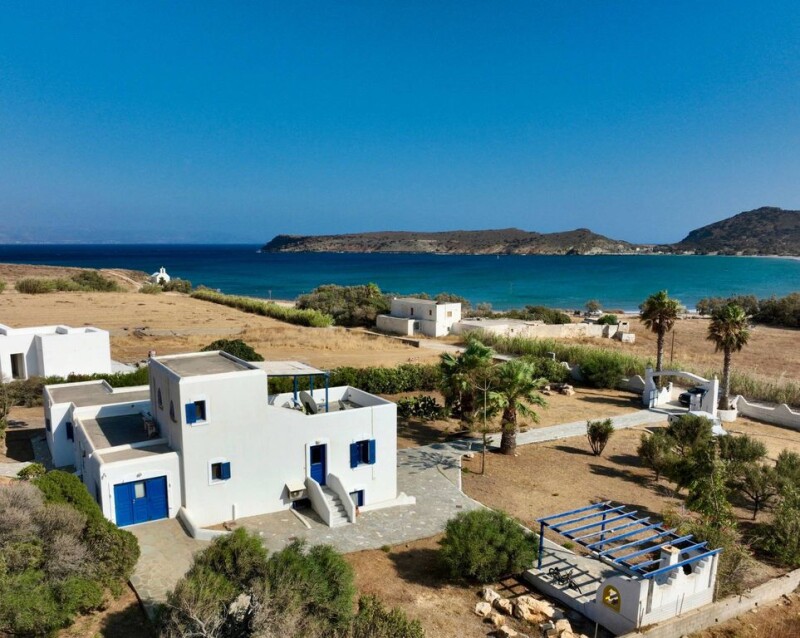 Just steps from the beach, Galazio is a typical sugar cube home, located in a beautifully secluded area on the east coast of Paros. Views of the bay and Molos beach are simply superb. Curved, white architecture, blue shutters, and bursts of bright pink bougainvillea all add atmosphere to this coastal retreat. Galazio consists of two communicating apartments, each with an open-plan living/dining area and fitted kitchen, as well as an attached studio to the main house. Double-aspect doors and windows fill the rooms with scenes of crystal-clear waters and vibrant blue skies. Galazio is located in a unique protected area of special natural beauty, belonging to the Natura 2000 network. All four bedrooms have balconies that open up to bring in fresh sea air and elements of the surrounding nature. Popular beaches of Tsoukalia and Kalogeros, along with traditional villages of Marpissa and Prodromos are a short distance from the property. The buyer of this property is eligible for the Greek Golden Visa Program.