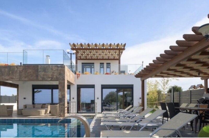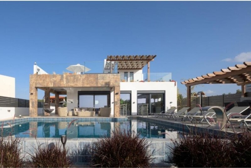 4 Bed Villa FOR SALE in Arkadi Skaleta for € 1.300.000 . This 220 sq. m. furnished Villa is on the Ground floor and features 4 Bedrooms, 4 bathrooms . The property also boasts Heating system: Heat pump, tiled floor, view of the Sea, Window frames: Aluminium, parking, garden, fireplace, swimming pool, electrical appliances, solar-powered water heater, BBQ, internal staircase. The building was constructed in 2022 Plot area: 800 s.q. . Building Energy Rating: A Rooms: 4 Bathroom: 4 Floor: Ground floor Heating: Heat pump Status: New-built Year of manufacture: 2022.