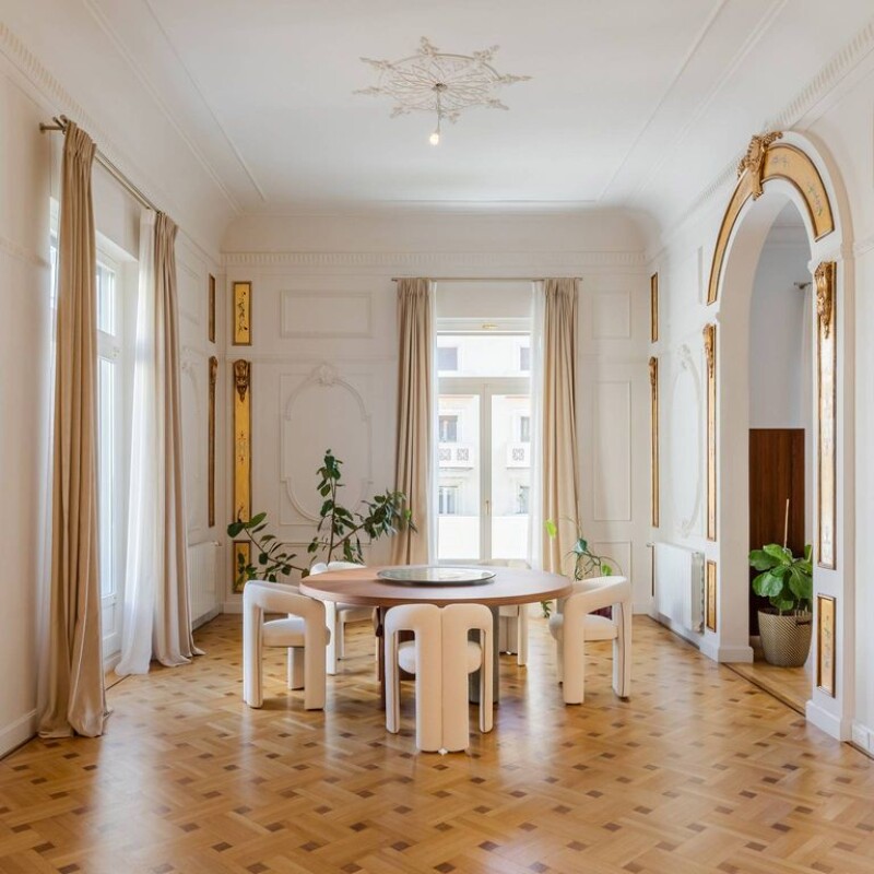This is an amazing property, a very prestigious house, one of very few in the city. Its a corner house at Aristotelous square, 285 square meters with six peripheral balconies and extremely high quality renovation. - The wooden floors are hand made out of oak designs - Under the floors there is new heating piping for the radiators - All window frames are custom made with triplex glass , both heat and sound insulation - It is a smart home Control 4 , with complete KNX functions and all the latest cinema and sound technologies - All interior doors are custom made with solid bronze knobs (270cm) - All marble constructions are of the highest quality, the tiles in the master shower are hand made out of zellige from Morocco - Heating and cooling systems are custom for this house, with heating and cooling zones and complete automation systems - The paintings on the walls are hand made with gold leafs - The entrance door is custom made following the design of the building with full security features including bullet proof glass - There are many automations following the highest quality and fully remote controlled - The kitchen is made out of Arabescato marbles with both gas and induction hobs, floor hoods , custom furniture and SMEG electric appliances The house has one master bedroom with a very large master bathroom and a closet room across it. It has a secondary bedroom with its own bathroom and a separate Laundry rom. It has a large space that is used as open office space now but can be transformed to a different use. It has large open spaces and a very big living room with a guest bathroom In general due to the size of the house many modifications can be made. This is a very unique and prestigious property. The Energy Performance Certificate is under publication. Aristotelous Square Aristotelous Square is one of the most emblematic places in Thessaloniki. It is located in the core of the city and is its cultural and social landmark. The square offers a unique sense of architectural beauty and lively activity. It is surrounded by impressive buildings, monuments and shops. The square is a favorite destination for residents and visitors to the city, as it is the ideal location to enjoy your coffee, stroll and explore the City Centre. The square hosts various events and cultural events throughout the year, thus offering a dynamic space for entertainment and social activity. Aristotelous Square is the ideal place for those who wish to live in the center of Thessaloniki, enjoying the bustling area with all the amenities of the city at their feet. Discover our unique residences in Aristotelous Square and enjoy the urban lifestyle in this beautiful area.
