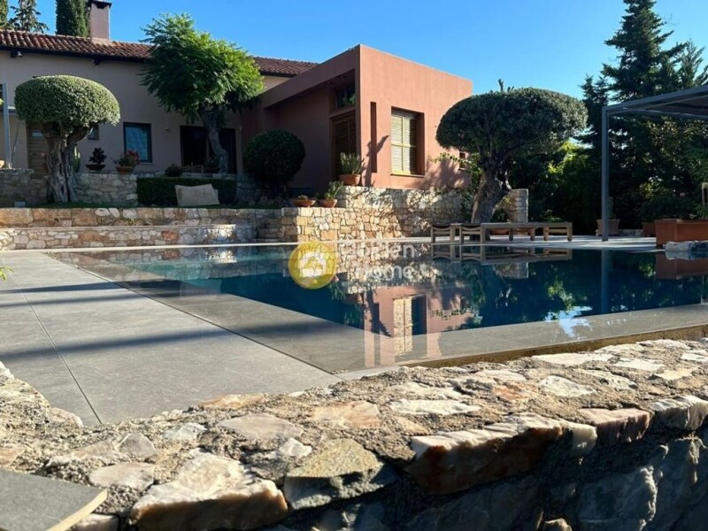 Paiania - Sparoza - for sale villa with a total area of 413 sq.m. In an plot of 3450 meters with a landscaped garden and a 60 sqm swimming pool, we meet two single-storey houses of 281 sqm and 132 sqm respectively, which were completely reconstructed and renovated in 2006. The first villa has a large living room with dining room, a separate sitting room with fireplace, independent kitchen, 4 bedrooms (1 master with walk in closet), 3 bathrooms, laundry room and 1 wc.The second villa has a large living room, dining room, independent kitchen, 2 bedrooms and 2 bathrooms. Additional features - autonomous oil heating, air conditioning with VRV unit, teak wood frames with double glazing, oak floors, alarm, security door, 2 warehouses with a total area of 20 sq m and 7 parking spaces. The property is located 2km from the center of Paiana, close to private and public schools, close to the airport, the train station and public transport.