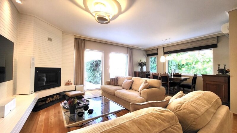 Located in the sought-after Pigadakia neighborhood of Voula, this elegant two-story house offers a comfortable and refined living experience. Recently renovated, the 246 square meter residence spans three levels. The ground floor features a spacious living area with oak floors, ample natural light, and a modern Italian kitchen equipped with practical counters, numerous cabinets, and high-end appliances. A guest WC has been tastefully renovated. Upstairs, three sunny bedrooms (including a master) each have access to balconies with awnings. A well-appointed bathroom serves this level. The basement provides a versatile space adaptable to various needs, whether it be a playroom, office, or additional living space. It also houses a smaller kitchen, a tidy bathroom, and a laundry room. The house is equipped with amenities like an individual oil boiler, solar water heater, energy-efficient fireplace, modern air conditioning, and security features. It boasts oak floors, three-phase and night current, ample storage, and a designated parking spot. Outside, there's a private terrace and an exclusive garden. Residents also have access to a communal swimming pool set in a well-maintained garden for added tranquility. Situated on a quiet street, the property is a short walk from a green hill, Voula and Kavouri beaches, parks, playgrounds, and schools of all levels. Built 1995, fully renovated 2023.