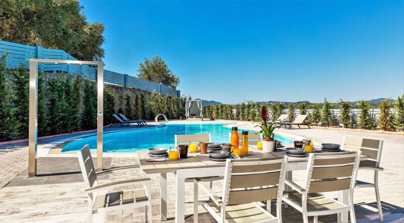 This extraordinary 436 sq.m. villa redefines luxury living, offering an unparalleled blend of modern amenities, breathtaking natural beauty, and prime location. Set in one of the island’s most coveted areas, this smart home boasts two swimming pools, a private tennis court, and panoramic views of the deep blue Ionian Sea, verdant hills, and Corfu Town. A short drive from sandy beaches, this property is conveniently close to Dassia and Ipsos, where you’ll find a variety of shops, schools, cafes, and restaurants, ensuring both privacy and easy access to amenities. Spanning three levels, the villa seamlessly integrates indoor and outdoor spaces, each designed to maximize the stunning views. Spacious verandas and balconies on every floor overlook the serene Kommeno Bay, offering the perfect setting to relax or entertain. Ground Floor: Accessible via the main entrance or through the semi-basement garage Includes a heated indoor pool, gym, one bedroom with a walk-in closet, one bathroom, a solar energy system, and an engine room Second Level: Open-plan layout with an expansive sitting area featuring a billiard table, a dining area, and a state-of-the-art kitchen A large en-suite bedroom Floor-to-ceiling windows and luminous spaces that flow onto the verandas Third Level: A luxurious master bedroom with a walk-in closet and an en-suite bathroom with a shower Additional bathroom and spacious verandas wrapping around three sides A stunning outdoor pool and private tennis court A rooftop garden featuring a Jacuzzi, dining area, and 360-degree views beneath a bioclimatic pergola Built in 2021 with high-quality materials and precision, this villa is more than a home—it’s an exceptional lifestyle opportunity.