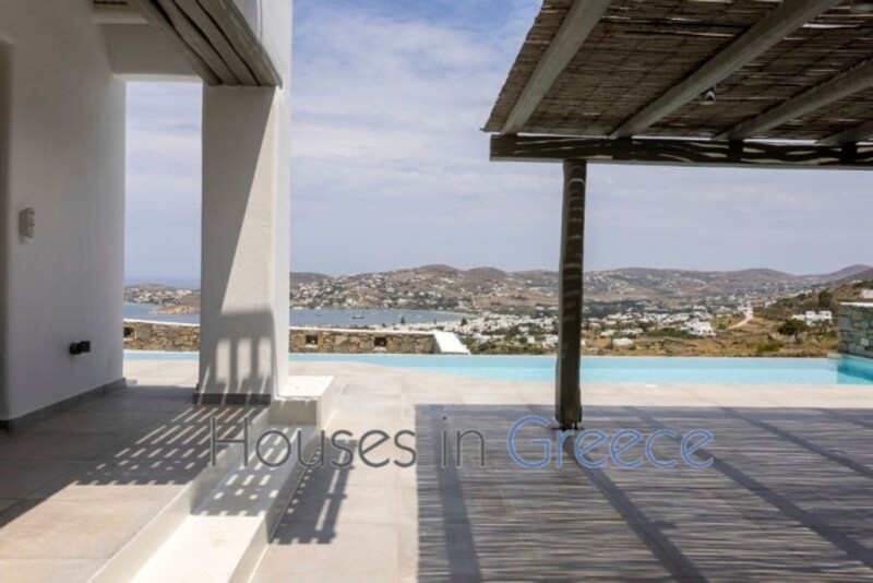 This beautiful house, built in 2016, is located in the hills above Paroikia, with breathtaking views over the bay of Paroikia. The house of 310 m2 is part of a house complex consisting of 4 houses, and has a beautiful wooded plot for exclusive use of 1400 m2. On several half-levels, we have a total of 4 beautiful bedrooms, 3 bathrooms, a living room with very high ceilings opening onto the kitchen, a beautiful games/TV room, and a large storage room. The exterior of the house comprises a beautiful tiled area, with a swimming pool of around 50 m2, a jacuzzi, a large pergola protecting the dining area and a large barbecue. The house is for sale fully furnished and equipped.