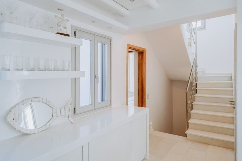 This beautiful newly built Cycladic villa is located in a quiet residential corner of the hill overlooking the bay of Piso Livadi and Logaras, between their respective beaches and that of Chryssi Akti (Golden Beach). Piso Livadi and Logaras are the most famous and important villages on the east coast of Paros with the marina, restaurants and taverns on the seafront. Naoussa, the most important town in the north of Paros as well as Paroikia which is the capital of Paros, are easily reachable by car in about 15 minutes. This fantastic villa has a wonderful layout, a comfortable outdoor space and a beautiful open sea view. Both the beaches of Piso Livadi and Logaras are within walking distance. The beaches a little further away such as Molos and Golden beach are reachable in a few minutes by car. This beautiful property is ideal for families and investors, but also for couples looking for a unique villa for personal use or for a profitable rental during the summer season and close to the center of Piso Livadi.
