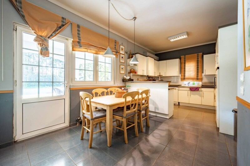 Elegant spacious villa with swimming pool, in Kifissia. In Kifisia, a great detached house of luxurious construction spanning 550 sq.m. on a 1,100 sq.m. plot built in 2004, is boasting a marvelous garden and a large swimming pool. The house is spread across 3 levels. On the ground floor, there are spacious reception areas with a fireplace, a second sitting room or office with a fireplace, a WC, and a spacious kitchen with a casual dining area. This level has access to the impressive garden and the pool. The first floor consists of 5 bedrooms, 1 master with an ensuite bathroom and a walking closet, and 2 additional bathrooms serving the other bedrooms. Finally, the basement of the house comprises a playroom, a WC with a shower, a laundry room, a boiler room, and a garage. The house features an elevator, wooden floors, and the aluminum frames are in excellent condition. An exceptional detached house with easy access to the central market.