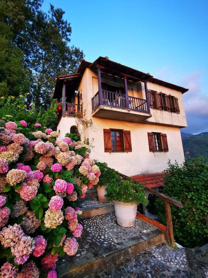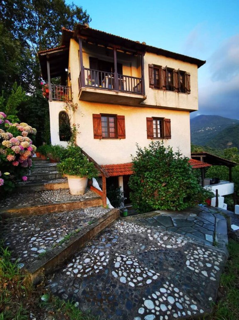 MOURESI PELION for sale vintage detached house in traditional style 260 sq.m. with wonderful views of the Aegean Sea and the Sporades islands. The well-preserved traditional mansion, built in the late 1980s. The traditional detached house is located on a 1,100 sq m plot within the city limits, arranged in a beautiful garden and welcoming terraces from which you can enjoy the magnificent view of the Aegean Sea, the Sporades and Mount Athos. On the 1st floor there is a spacious hallway, two well-equipped kitchens connected to the dining room, as well as a bedroom and a living room. There are also two bathrooms with showers and two bedrooms. On the second floor, whose entrance is from the garden level, there is a bedroom with a terrace and a bathroom with shower. On the upper level there is a fully equipped apartment, offering potential guests complete independence. The apartment has a spacious kitchen and living room, a cozy fireplace, a bathroom and two bedrooms with garden views. Outside there is an outdoor kitchen for barbecue and a tiny apartment with a kitchenette, bathroom and bedroom. It is proposed as a permanent country residence, but also as an investment property in a beautiful area of Pelion. SALE PRICE: 600,000 EUROS PROPERTY CODE: P-20.