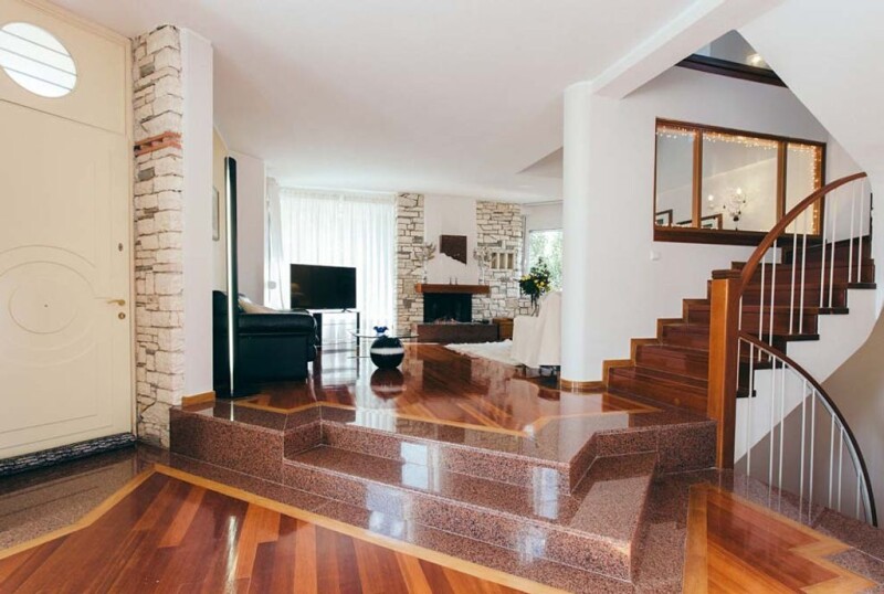 PEDINI IOANNINON villa for sale 435 sq.m. of neoclassical character which, with the use of stone and wood, successfully combines traditional luxury with modern aesthetics. It is built on four levels, on a plot of 580 sq.m. with a comfortable outdoor area with trees, plants and a barbeque, it has two entrances and includes five bedrooms. GROUND FLOOR On the ground floor (145 sq.m.) there are two large sunny living rooms with a traditional fireplace, a spacious dining room, a large terrace and a fully equipped kitchen. There is also a small W.C. and a room with two single beds and a private bathroom. FIRST FLOOR The main staircase of the villa leads to the first floor (115 sq.m.) where there are the three main bedrooms. First is the large bedroom with private bathroom. On the same floor are two more bedrooms with a large independent bathroom. Each room has its own private terrace offering wonderful garden and mountain views. LOFT Continuing the tour, you find yourself in the spacious and comfortable attic (45 sq.m.) with its own bathroom and independent kitchenette with refrigerator. The attic also has two terraces with views of the garden, the city and the mountain All rooms are sunny and have air conditioning, large wardrobes and balconies with garden, mountain and city views BASEMENT For those who love exercise, the basement which is 120 sq.m. , is bright and can function as a mini gym or playroom. GARDEN-OUTDOOR SPACE The villa is surrounded by a green garden (580 m2) which has a gazebo with barbecue and outdoor dining area, as well as a spacious covered terrace. The sunny garden is ideal for children's activities, parties, yoga, relaxation and contact with nature. It is possible to build a swimming pool outside. PARKING SPACE There is private parking for five cars The area is very calm and peaceful and offers the advantage of being located 2 kilometers from the entrance to the city of Ioannina where the Ionia and Egnatia roads cross. It is 30 minutes from Metsovo, 45 minutes from Zagorochoria and an hour and a half from the beautiful coastal settlements of Sivota, Parga and Preveza. In addition, the University Campus and the University Hospital are within a 3-minute drive. Ideal residence for families surrounded by nature, but also as an investment property for tourist rental. SALE PRICE: 690,000 EUROS PROPERTY CODE: P-640.