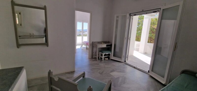 Located above the village of Alyki with sea view and Antiparos with sunset, this property of 250M² on an enclosed plot of 2520m² planted with olive trees is composed of 5 bedrooms, each with their shower room/toilet and kitchen. Totally renovated, with air conditioning in all rooms, and allowed to pool. Ideal for large families, or for rental, with access to all amenities on foot.