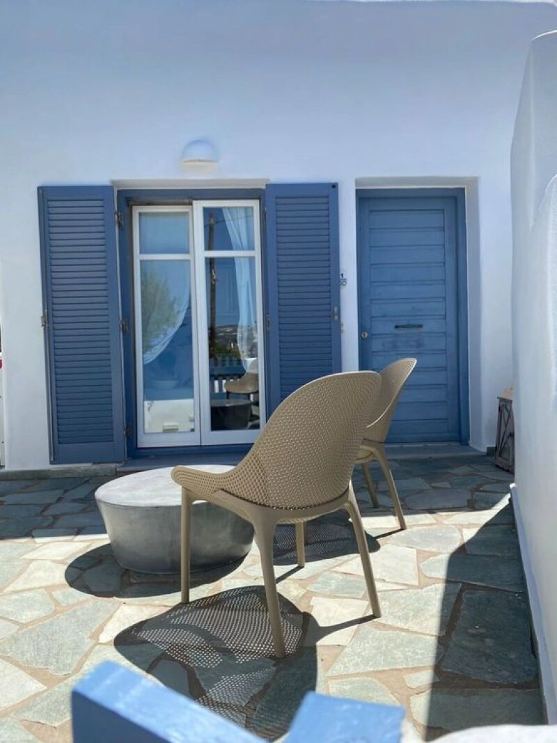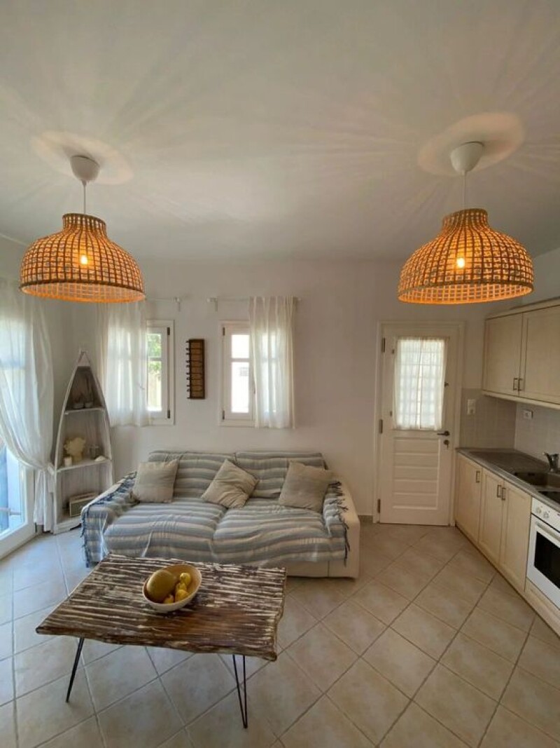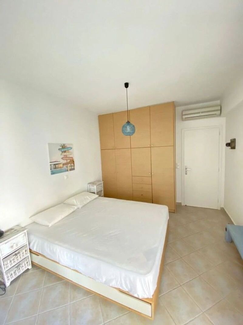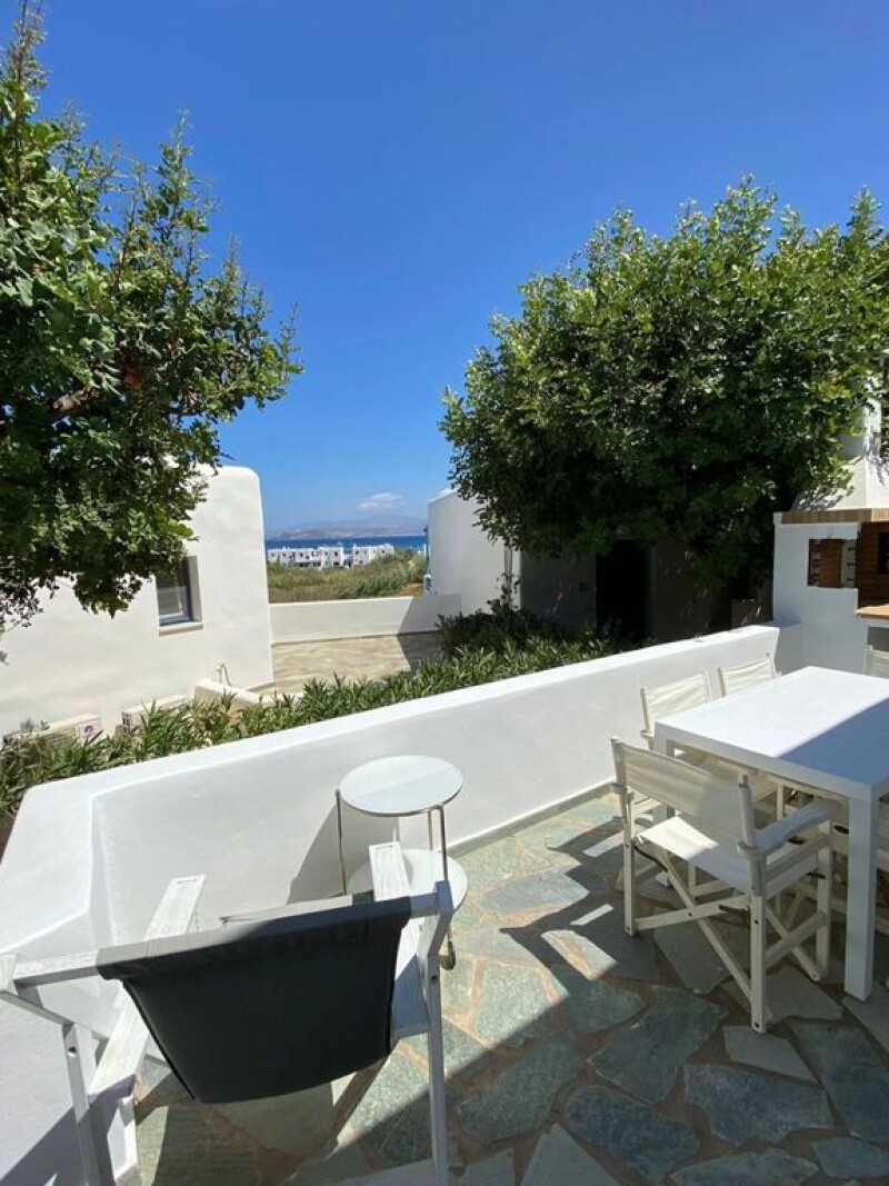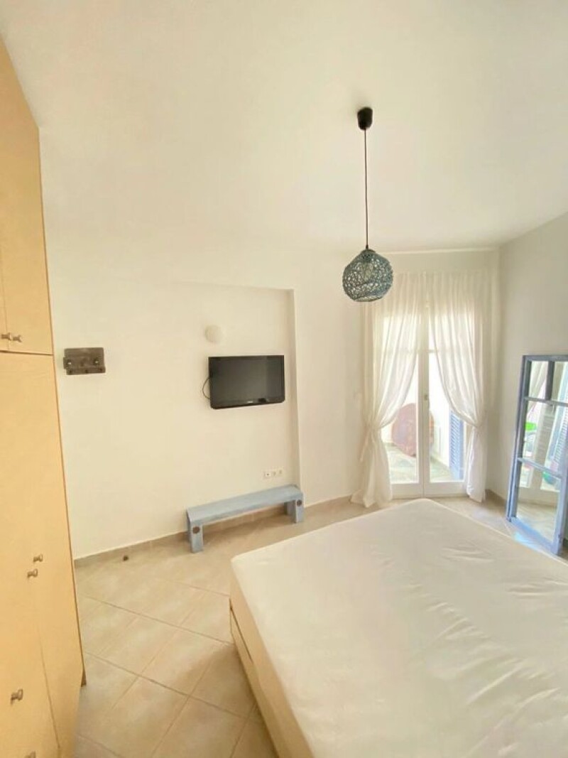 Located in Molos, in a residential complex, on a private plot of 143m² with private parking, this small detached house of 57m² consists of a kitchen-living room, two bedrooms and a bathroom/wc. All rooms open onto the paved terrace with built barbecue. Sea view and view of the island of Naxos. Communal swimming pool. Access to the pretty beach of molos on foot.