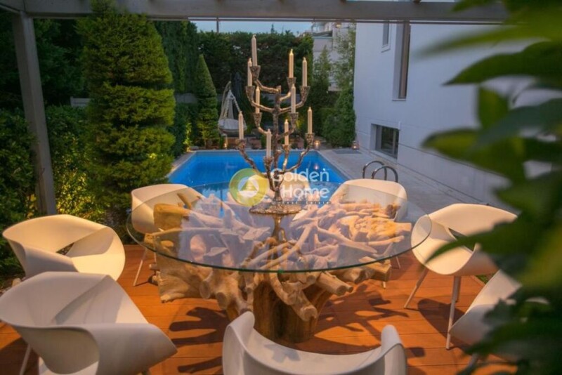 Wonderful detached house near Golf Glyfada on a plot of 475 sq.m. with nice garden with pool, garden - pool furnitures, electric awning, outdoor bar, bbq. On four levels. Basement: storage room, playroom - gym, maid's room with wc, underground parking. Ground floor: living room, dining room, kitchen, bathroom. 1st: 4 bedrooms of which 1 is master, 2 bathrooms. 2nd: 1 large master bedroom and large terrace with bbq and nice view. The levels communicate with an internal wooden staircase and an elevator. The villa is furnished with all appliances. It has oil autonomous heating, a/c, solar panel, fireplace, alarm, awnings, screens, security door, double glazing.