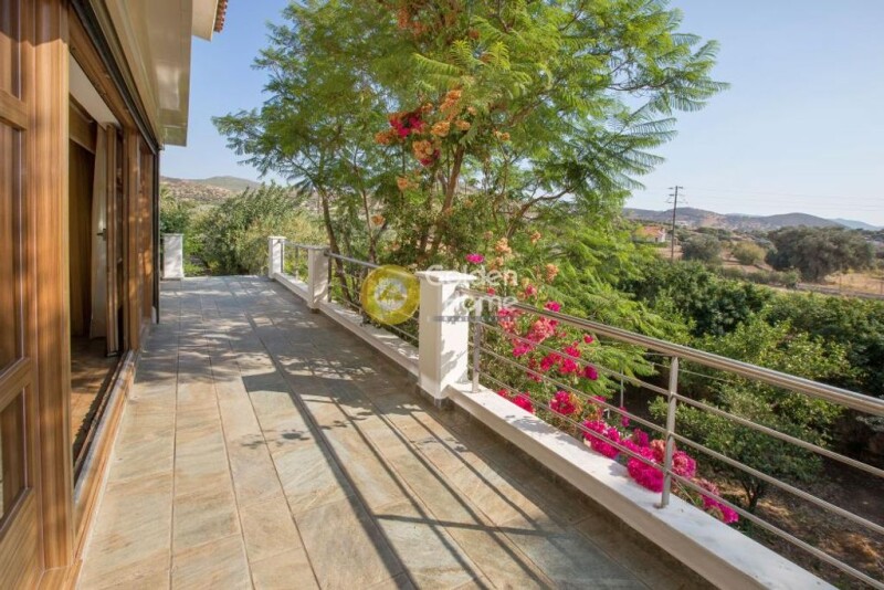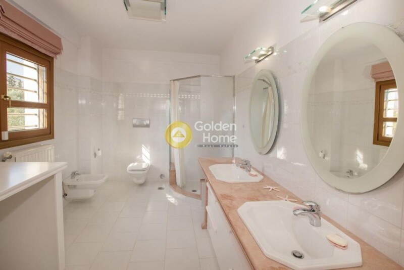 Luxurious detached house of 514sqm, in a quiet area with a large plot of 4,500 sqm. It has an underground gas tank for heating. It has comfortable living-dining areas with a kitchen on the ground floor. Upstairs there are three large bedrooms, one of which is a master with its own bathroom. Finally on the lower level there is a living room and 2 bedrooms with a bathroom and infrastructure for a secondary kitchen. Outside there is a large indoor-opening heated swimming pool. The gardens are extremely well maintained and the estate also has 80 olive trees, fruit trees, 2 boreholes, automatic irrigation. Finally, there are infrastructures for two closed parking spaces.