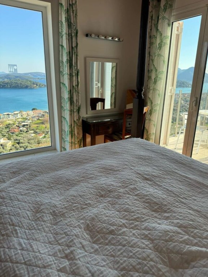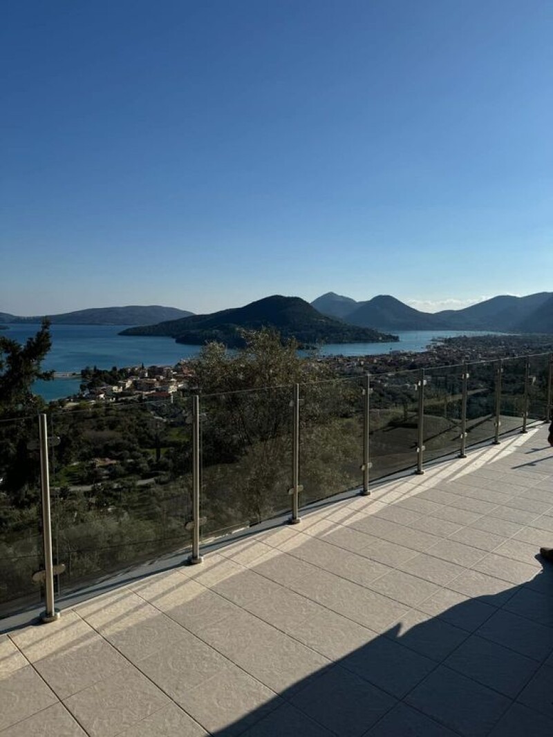 PERIGIALI LEFKADA is for sale a newly built luxury villa of 142 sq.m., two levels, on a plot of 1,170 sq.m. with unlimited sea views of Meganisi, the island of Scorpios and Nidri. The villa consists of two independent apartments on the ground floor and 1st floor. The ground floor has 3 bedrooms, a living room-kitchen, 2 bathrooms and a wc, while the 1st floor apartment has 2 bedrooms, a small kitchen-living room, a bathroom and a large terrace with an unlimited sea view. Built in 2024, energy class A, heating-cooling with air conditioners. The entrance to the upper apartment is via an external staircase. Very large outdoor area, with an outdoor pool on the ground floor, with ample parking and various trees and plants in the outdoor area. The villa has unobstructed and unlimited sea views from all indoor-outdoor areas and is located next to cosmopolitan Nidri. It is proposed as a permanent country residence, but also as an investment property. SALE PRICE: 850,000 EUROS PROPERTY CODE: NG-30.