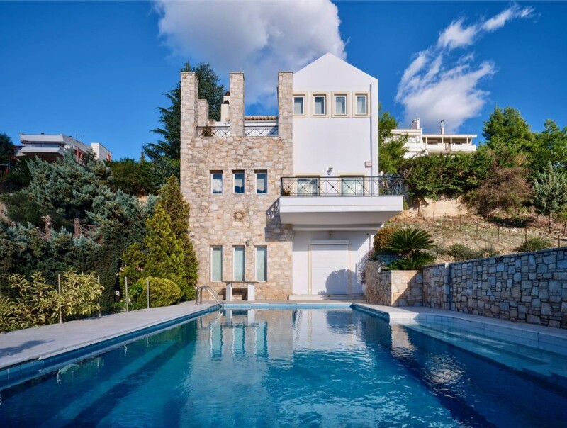 Located in Ekali, this iconic, peaceful home is in one of the most sought-after areas of Northern Athens. Preston is a coveted independent residence that enjoys beautiful views. With over 296 sqm of living space, Preston has mountainous vistas over Penteli and is ideal for relishing nature with long strolls, taking in the crisp, clean air, and the beautiful surroundings. It is close to the exclusive Ekali Club, as well as the sophisticated suburb of Kifisia where high-end shopping and fine dining can be enjoyed. Preston is a 3-level quintessential family home, where cherished memories can be made. Built with stone and white details, this residence combines luxury, functionality, and harmony. The spacious 99 sqm first level features a playroom, a bathroom and two storage spaces. It can be beautifully converted into a stylish guesthouse and has direct access to the swimming pool. At the back, there is a charming barbecue area with stone and marble details, ideal for those precious Sunday get-togethers, or spontaneous alfresco dining. On the second level, where the main entrance is, the space is flooded with natural light, streaming through the windows and balcony doors. Featuring a spacious living area with a fireplace and marble floors, a dining area and a WC, it is the perfect place for enjoying time with family and friends. The open concept kitchen is purposefully placed on the far-left end of the space, allowing for both discretion and interaction. There is also a cozy front balcony where starry nights and enthralling views can be enjoyed. Marble stairs lead up to the private area of the residence and to the bedrooms. Preston features three bedrooms, one en-suite, and two more bathrooms. The two front rooms share a spacious balcony with endless views of Athens. Especially after dawn, the twinkling city lights, and the mountainous horizon create a mesmerising experience. At the back side of the floor, there is a second, private balcony, adjacent to the master bedroom. The residence offers two closed parking spaces on the ground floor. There is also an attic on the top floor which can be used as a storage space or transformed into a private hideaway. The buyer of this property is eligible for the Greek Golden Visa Program.