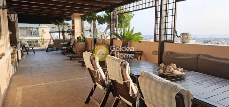 Floor apartment 130 sq.m, in A. Glyfada, 5th floor, penthouse, with terrace and balconies 83 sq.m, with an amazing view. 3 bedrooms (1 master bedroom with wardrobe room and 2 bedrooms). 2 bathrooms, the master with hydromassage. Living room with granite floor and fireplace. The kitchen has space for built-in appliances and has granite on the worktops and wall. Alarm, cameras, 2 parking spaces. It is a very neat residence, with quality materials from the owners. The area is quiet with lots of greenery.