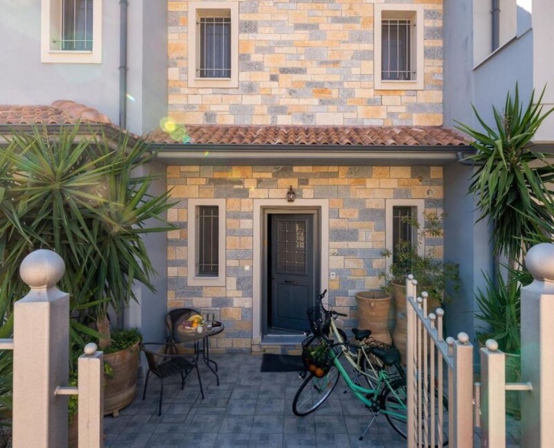 Sagiada Homes is a development of 5 townhomes, each consisting of three levels, each with its own private entrance, its own front and back yard, and its own electricity and water supply. The land on which it is built measures 413 sq meters. The construction started in 2014 and was completed in 2018. It is all in new condition, building, as well as contents. Four of the maisonettes have an area of 90 square meters, 30 on each floor. All have sea views, towards the Ionian Sea and the island of Corfu. The ground floor consists of a living room, dining room, fully equipped kitchen and WC. This level also has a patio door, leading to a balcony with private stairs leading to the back yard. An internal staircase from the ground floor leads to the upper floor, which has a very large, single bedroom and bathroom with shower. From the ground floor, another staircase that closes, leads to the basement level. This is a 3.5 meter high basement with a window to the backyard, finished with the same quality materials as the rest of the building and a marble staircase. The fifth maisonette has a total area of 114 sq m. At the entrance level, it has a fully equipped kitchen, living room, dining room and half a bathroom, while it is configured in the same way with a patio door to the rear balcony, etc. The basement is an empty space with high ceilings and a closet, and the upper floor has two bedrooms, each with a closet and a balcony, one with a sea view, the other with a mountain view, as well as a full bathroom with a shower. The construction of this complex began in 2014 and was completed in 2018. It is a conventional concrete frame building, insulated according to the latest energy efficiency requirements. Each of the maisonettes has its own solar panel for hot water production, although each solar panel can also be operated electrically. Heating and cooling are achieved with state-of-the-art Daikin 12000 BTU split-level units, with A++ energy efficiency. All ground floors have ceiling fans and all balconies, both upstairs and downstairs have awnings to minimize heat in the summer. The building materials in this property are of top quality, inside and out. The maisonettes are fully furnished and equipped. Sagiada is the northwesternmost part of Greece, on the coast just before the border with Albania. The existing restaurants, cafes and super markets are open all year round. It is 17 kilometers from the port of Igoumenitsa, which serves Corfu and Italy. The nearest airports are Corfu, Ioannina, and Aktion Airport, which is approximately 1 hour and 20 minutes away. It is proposed as an investment property, but also as a holiday-permanent residence. SALE PRICE: 625,000 EURO PROPERTY CODE: SP-50.