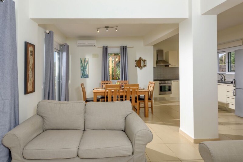 This is a complex of 5 villas varying from 2 to 3 bedrooms each. Its is an exclusive collection of five individually designed villas that form their own private complex in the quiet Akrotiri peninsula near Chania. The villas are enclosed in a natural stone walled garden, with plenty of grass and a common tiled swimming pool of 75 sq.m. Each villa has its own private garden area, with a pergola that provides a beautiful area for al fresco dining. Two natural stone barbeques are also available for the exclusive use of residents. All bedrooms have their own private balcony with stunning sea or mountain views. EACH VILLA FEATURES: Air conditioning Under floor heating 50' WiFi TV Fully equipped kitchens with all appliances including washing machine and dishwasher Quality furniture ROOMS INCLUDE: The three bedroom villas have two Queen size double bedrooms and one bedroom with two single beds. The 2 bedroom villas have one Queen size double bedroom and one bedroom with two single beds. All bedrooms have balconies. Under floor heating is also fitted in each of the villas. LOCATION: Use the following co-ordinates on Google earth “fly to” search field 35° 33’ 35.23’ N, 24° 5’44.06” E press enter and it will take you straight to the villa location. Nearest Airport: Chania at 7 Kilometres Nearest Ferry: Souda Bay at 14 Kilometres Nearest Beach: Tersanas at 2.5 Kilometres Car: recommended LOCAL ATTRACTIONS: The Villas are located in the beautiful Akrotiri peninsula near Chania in western Crete in Greece. The beautiful Venetian city of Chania is a 20 minute drive, known as ’little Venice’. Always the first thing you hear about Chania is the Venetian Harbour, the old port, the narrow shopping streets and waterfront restaurants. The harbour is a must see – old buildings, museums, churches and crafts shops (some with genuinely interesting and sometimes local, products on offer). The atmosphere has a touch of Florence and Venice (a few years ago when those cities still had some room to walk), combined with the culture and character of Cretan people and traditions This property is semi-detached.