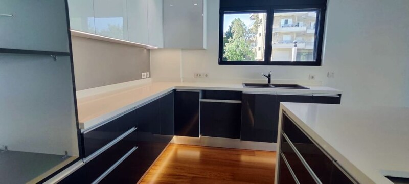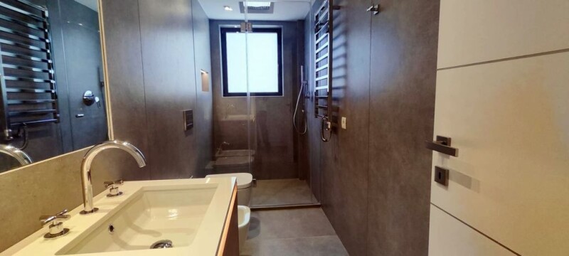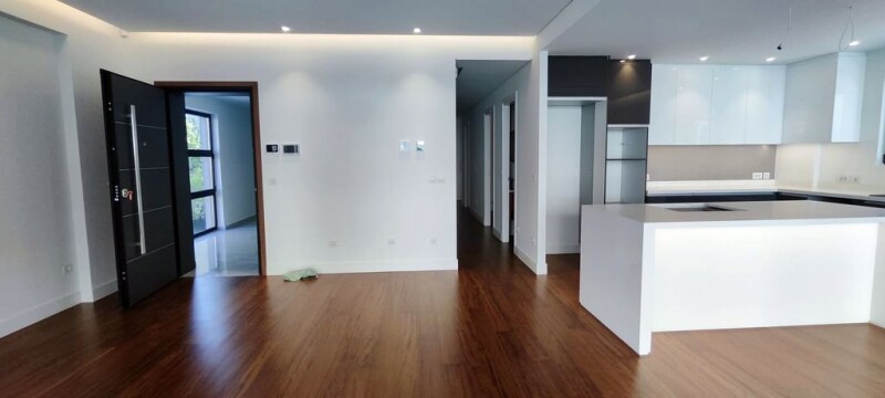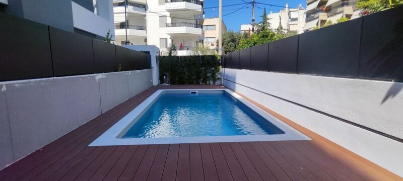 Welcome to an exquisite living experience in this elegantly designed apartment, located on the 1st floor of a prestigious complex. Spanning an impressive 133 m², this residence is a harmonious blend of luxury and modernity, offering a lifestyle of unparalleled comfort and sophistication. ### Interior Highlights **Bedrooms & Bathrooms:** - **Master Bedroom:** A sanctuary of relaxation, featuring high-gloss acrylic closets with interior lighting and a custom-made bathroom with stone-tops and ambiance lighting. - **Additional Bedrooms:** Two spacious rooms, thoughtfully designed with custom linear lighting and convenient switches for ceiling lights, table-top lamps, and curtains on both sides of the bed. - **Bathrooms:** Two beautifully appointed bathrooms with floor-to-ceiling tiles, custom-made furniture, and vanity magnifying mirrors. An additional guest W/C ensures convenience for visitors. **Living Spaces:** - **Living Room:** Bask in the natural light streaming through the expansive 7.5x2.4m Alumil windows. Enjoy the warmth of the custom cement-coated fireplace, equipped with ambiance lighting, under the elegant custom ceilings. - **Kitchen:** A chef's delight, featuring high-gloss acrylic finishes, a minimalistic style, and a stunning stone island unit ready for ceramic stove installation. - **Dining Area:** Perfect for entertaining, seamlessly flowing from the kitchen and living spaces. ### Luxurious Amenities **Pool Lounge:** - A serene 60 m² lounge area with a 3m x 6m pool, perfect for unwinding or hosting summer gatherings. - Outdoor internet router and intercom screen to communicate with the apartment. **Front Balcony:** - A spacious 24 m² balcony offering a delightful outdoor space to relax and enjoy the view. **Floors & Lighting:** - Elegant Wooden Iroko floors imported from Italy. - Custom linear lighting throughout, enhancing the sophisticated ambiance of every room. ### Energy & Climate Control - **Heating:** State-of-the-art heated floors operated by a Samsung heating pump. - **Air Conditioning:** Efficient fan coil system with individual thermostats in every room. - **Hot Water Supply:** Reliable 200L Sun Boiler and electricity. ### Modern Conveniences - **Security:** Robust security features including a security entrance door, 11 CCTV cameras, and an installed alarm system. - **Technology:** Fiber-optic internet, touchscreen controls, and electric operated curtains in all rooms. - **Storage:** A generous 11 m² storage room. - **Parking:** One underground parking space with the option to acquire an additional space. ### Exclusive Features - **Gym Access:** Dial access control and a separate internet line for TV and general use. - **Custom Ceilings:** Designed with ambiance lighting for a refined atmosphere. - **Magnetic Locks:** High-quality custom-made doors with magnetic locks for enhanced security. This apartment is the epitome of elegance and modern luxury, offering a comprehensive suite of high-end fittings and smart technologies. It’s an ideal residence for those who value both comfort and style, set in a secure and sophisticated environment. Don’t miss the opportunity to make this exceptional property your new home.features three comfortable bedrooms, one of which is a master with a private bathroom, offering privacy and comfort. There are a total of two bathrooms and an additional WC for the convenience of residents and guests. The autonomous underfloor heating with a heat pump and air conditioning ensure excellent living conditions all year round. One of the special features of the apartment is the private swimming pool, located in a 60 sq.m. private garden, offering moments of relaxation and fun. There is also an internal storage room for additional storage space. The aluminum frames are sliding and equipped with double glazing and screens, providing security and soundproofing. The apartment has an alarm system and external security cameras for additional protection. The floors are of exceptional quality, made from Italian Iroko wood, adding a sense of luxury and warmth. The apartment features a solar water heater, an elevator, and underground parking for the convenience of the residents. The custom-made ceilings throughout the house give a unique character and style to the space. Additionally, the building is equipped with photovoltaic systems to reduce communal expenses, contributing to energy efficiency and economy. This luxurious apartment combines modern amenities with high-quality construction and is an excellent choice for those seeking an upgraded quality of life.