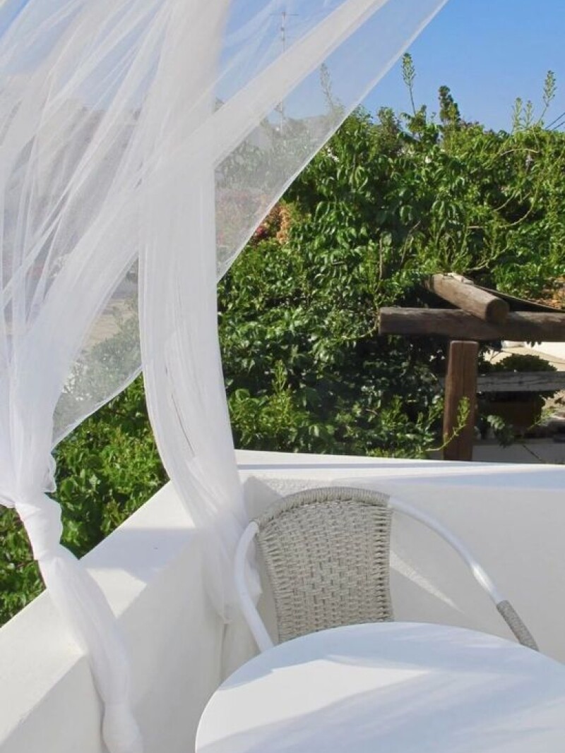 Charming village house in Parikia, pedestrian street and quiet residential area. House on 2 floors, composed of a living area with living/dining and kitchen, a beddroom and a shower room/toilet. On the first floor a bedroom, shower room/wc and two terraces. Access to all amenities.