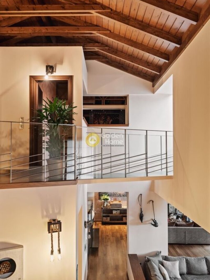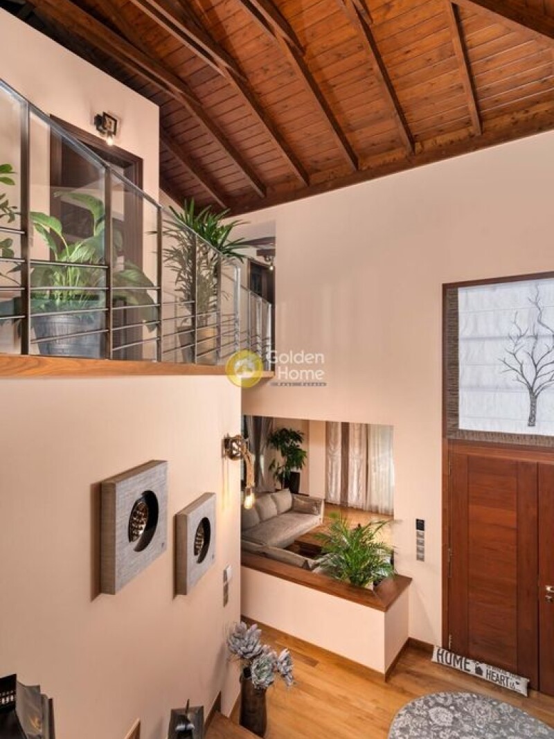 Thrakomakedones-Attica, for sale, furnished maisonette of 3 levels of total surface of 550 sq.m, of excellent quality and aesthetics, built in 2009, which is located on a plot of 3.067 sq.m, with the possibility of additional building of 800 sq.m. It has unlimited views to the mountain of Parnitha, the Athens basin and the Saronic Gulf. It consists of the semi-basement area of 160 sq.m, with a play room, kitchen, 1 bedroom, bathroom, maid's room, laundry room, food cellar, storage room, boiler room and a two-car garage with individual garage doors, the ground floor of 164 sq.m, with a reception area with hidden lighting, two living rooms with fireplace, dining room, kitchen with living room, WC and large terraces with views and the 1st floor with 3 bedrooms, one of which is a master with loft, office, dressing room, bathroom with jacuzzi bath and shower, and an additional bathroom with shower. The house has walnut and granite floors, wooden frames, underfloor heating, heat and cooling pump, alternative oil boiler and gas pre-installation. It has fibre optics, a heated ramp and a fire safety system. A lovely garden surrounds the house with lawn, flowers, BBQ, wood fired oven. It is fully secured with alarm, surveillance cameras, and security bars. It is 25 minutes from Athens and 35 minutes from Eleftherios Venizelos airport.