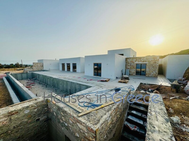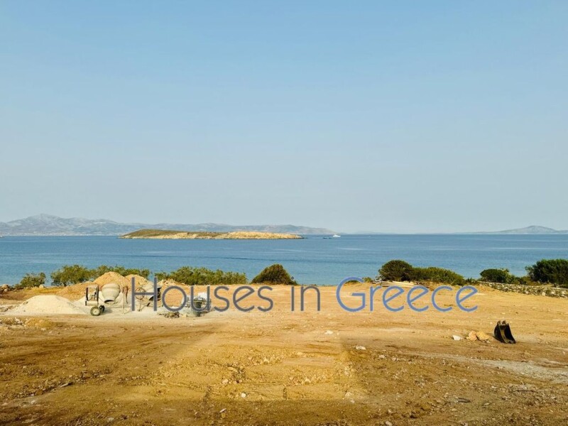 This magnificent 357 sqm villa (280 sqm living space) with direct access to the sea is located in the south east part of Paros, far enough away from the hustle and bustle of the island and yet very close to the pretty village of Drios and the beautiful beaches of Golden Beach , lolandonis..... The villa is scheduled to be handed by the end of 2024. It consists of a spacious living room followed by a large kitchen, both of which open onto the beautiful outdoor dining area and the 80m2 water element. There are five bedrooms with en-suite bathrooms. The fifth bedroom is independent, outside the central building of the house. The view is of course breathtaking: Only a dirt road separates the house from the sea.