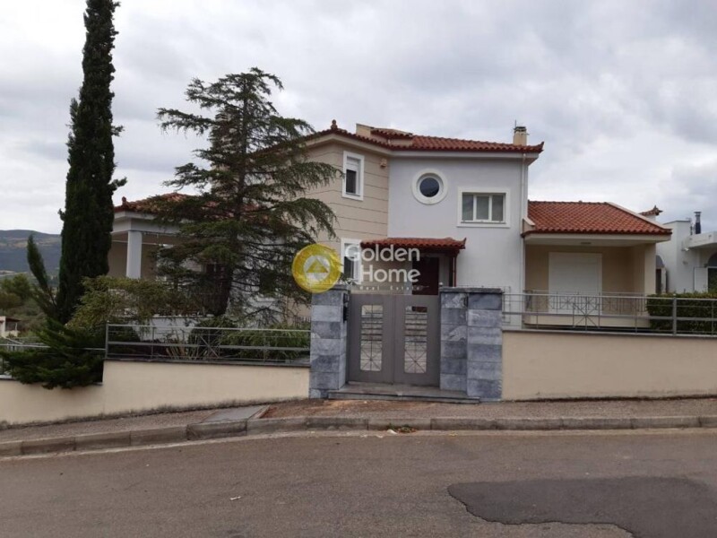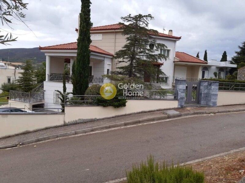 Mansion modern detached house of ultra-luxurious construction in 2006, 400sqm, 2 levels (which includes on the ground floor an independent apartment of 85sqm, 2 bedrooms, 1 bathroom and a large green garden and on the upper ground floor and the 1st floor a maisonette of 228sqm, 3 bedrooms, 2 bathrooms with Jacuzzi), fireplace, independent oil heating per level, air conditioning, triplex windows with heavy-duty wooden frames, alarm, jacuzzi, 2 fireplaces, 2 open parking spaces, with a beautiful green surrounding area of 400sqm,close to the church of Agios Fanourios and a beautiful panoramic Parnassos-Arachova view.