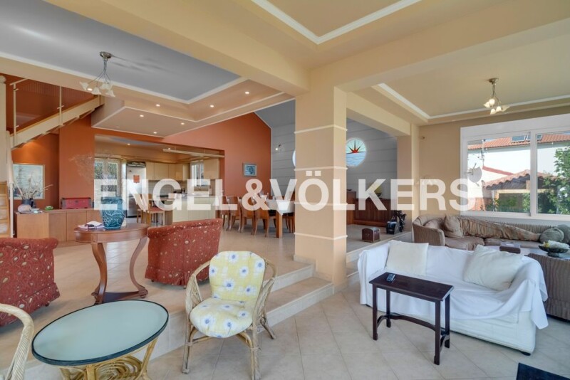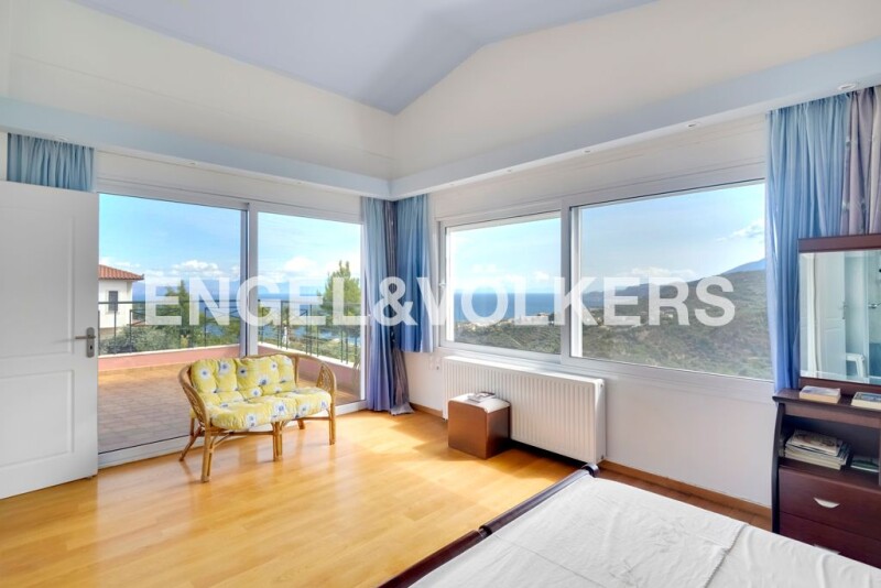 On the edge of the plateau, between olive groves and vineyards, this three-level villa unites the Greek blue sky with the green country of Akrata. The house is designed either for a permanent residence on two levels, or for summer holidays, since it can comfortably accommodate up to 10 people. It has 4 master bedrooms in the main area, and a fully functional apartment in the semi-basement, with two kitchens in total. The architecture with the interior balcony allows light to reach all rooms, while the impressive dining and living room with fireplace coexist harmoniously creating the perfect living space. Coming out of the main entrance you face the barbeque patio, with the wood oven, the large dining room and the stone living room with the fireplace, in a single space of 150 sq.m. about! Right next to the impressive self-cleaning swimming pool with springboard and hydromassage! Built in 1994 and constantly renovated and modernized, with quality aluminum frames, wooden floors, cooling and heating system, security systems, garage and parking sheets, many storage spaces, this magnificent property answers positively to every requirement! 1.5 acres of privacy, rejuvenation and relaxation, offered for a unique lifestyle or a profitable all-season investment. Special features: • Incomparable view of the Corinthian Gulf • Large master bedrooms • Plenty of storage space • Bio-cleaning pool with hydromassage and springboard • Outdoor fireplace and tree garden • High yield (long or short lease) Location: the province of Akrata in the center of the Corinthian Gulf, in the Northern Peloponnese, harmoniously combines mountain and sea. It extends from the coast to the foot of Mount Helmos. Features: rural and touristic small town, very close to Athens and to Patras, at a nodal point for all the archaeological sites of the Peloponnese and Central Greece, with a wonderful climate all year round. Accessibility: 148 km from Athens and 68 km from Patras, Akrata is a breath away from the biggest cities of the country, through a modern highway. Meanwhile, through the Charilaos Trikoupis Bridge and the Ionia Road, it communicates directly with Europe. Possibilities: The northern coasts of the Peloponnese attract vacationers from Greece and all over the world, most months of the year, due to the good climate and the landscape. As prices still remain at very attractive levels, it is considered a particularly up-coming area in European eyes, as an excellent investment for property buyers. Distances: • Athens International Airport – 178 km • Delphi – 176 km • Epidaurus – 135 km • Loutraki – 80 km • Patras – 68 km • Aegio General Hospital – 31 km • Krioneri Marina – 5 km.