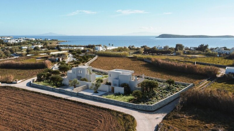 This elegant new construction villa with its 5 bedrooms will be built less than 150 meters away from Golden Beach. This quiet residential area is located in the south-east of Paros near the pretty, small fishing villages of Dryos and Livadia/Piso Livadi. The new airport on the west side of Paros is 20 minutes away and Naoussa to the north is 15 minutes away. The villa is located next to another almost identical villa, designed by the same architect, in close proximity to the popular Golden Beach beach and its beach bars, surf and sailing spots and beautiful hotels. The villa is easily accessible and is built over 2 floors with a lower floor with its own pool and beautiful outdoor area. This villa is ideal for a family with children and friends looking for a chic, modern 5 bedroom villa close to the beach.