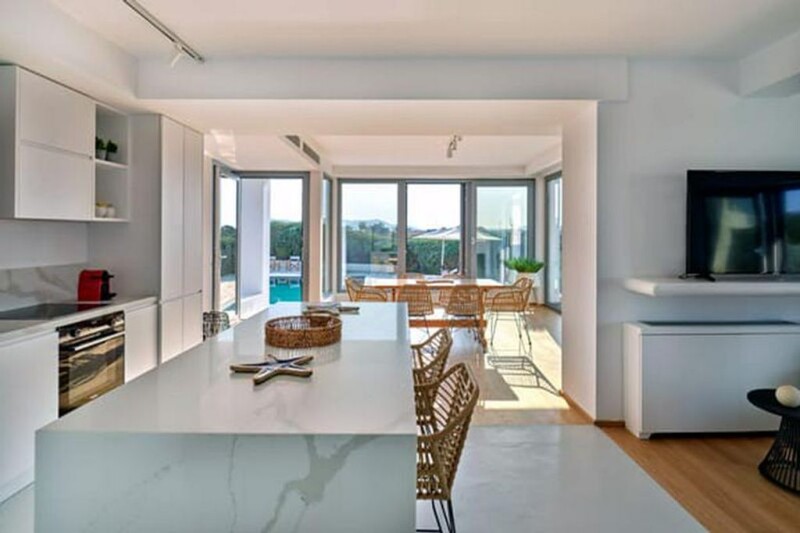 Paros Elite , situated on the enchanting island of Paros, is an exquisite contemporary villa with five bedrooms. It seamlessly marries the allure of its beachfront location with the tranquility of a nature-preserved setting, located just next to a quiet beach . The villa's interior exudes a clean, minimalist design that fosters a profound sense of balance. Neutral hues and clean lines combine to create a minimalist aesthetic that is both soothing and visually captivating. One of its standout features is the floor-to-ceiling sliding glass windows that not only flood the space with natural light but also seamlessly integrate the open-plan living area and kitchen with the inviting outdoor terrace. This seamless fusion with the outdoors evokes a profound sense of unity between the natural environment and the interior space. The living area is bathed in breathtaking views, making the surroundings an integral part of the overall lifestyle experience and enhancing the sense of openness. Step outside to the expansive terrace, which comes complete with a well-appointed kitchen, inviting you to relax under the shade of the pergola. The addition of a private pool and a sunken lounge elevates the outdoor space, providing an ideal setting whether you wish to take a refreshing swim, bask in the sun, lose yourself in a good book, or simply savor the natural beauty. Each of the beautifully designed bedroom suites features modern en-suite bathrooms, generous closet space, and awe-inspiring vistas. The interior design harmoniously blends white, wood, and marble to create an ambiance that complements and enhances the vibrant blues of the surrounding waters. Designed for flexibility and independence, the villa includes three spacious downstairs bedrooms with private entrances and charming terraces, offering privacy for your friends and family. Upstairs, the primary bedroom offers panoramic views from its private balcony. An additional en-suite bedroom with sea views can be found on the ground floor. With Santa Maria and Filizi beaches a leisurely stroll away and the beaches of Ampelas and Laggeri, as well as the vibrant town of Naousa, just a short drive away, the house ensures endless opportunities for exploration and adventure. Immerse yourself in the soothing embrace of the sun's therapeutic rays as you revel in the captivating charm of Paros. Location: Paros is located in the central Aegean Sea, it belongs to the Cyclades complex and is the third largest island in Greece. Unique Features: Paros is one of the top holiday destinations for Greeks and foreign visitors as it is distinguished for its cosmopolitan character and the intense lifestyle that it offers to its visitors. At the same time, the island offers a variety of organized or quiet beaches with clear blue waters and also has world famous beaches for kitesurfing and windsurfing. Every visitor has the opportunity to explore the most picturesque spots of the island, Naoussa and Parikia, enjoying a wide choice of cafes, restaurants and bars. Accessibility: The island of Paros is accessible from the ports of Rafina and Piraeus, ferries depart several times throughout the day and during the summer season. The island of Paros can be reached by plane as the island has an Airport with several flights operating mainly during the summer period when demand is high. Investment Opportunity: Buying property in Paros is a huge investment as the island is one of the top holiday destinations around the world, keeping its reputation high and attracting more and more investors.