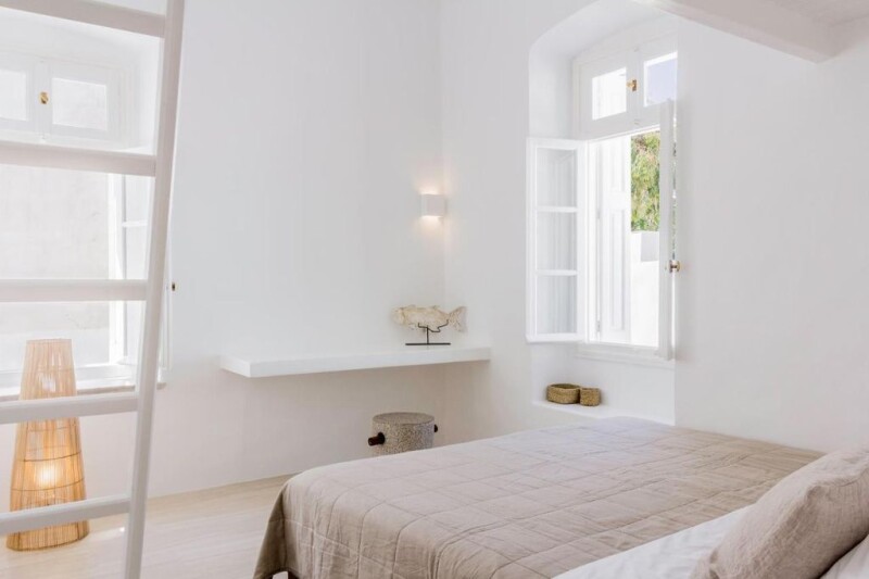 This cluster of deluxe quarters is a real masterpiece of Cycladic construction. It was built in 1910 in order to constitute a mansion of the time. Its architectural style is an ideal amalgamation of elegant taste and Cycladic charm in equal measure. This cluster of sumptuous chambers is divided in two levels stretching on 245 square metres in total amidst a plot of 459 square metres. In 2020 it was thoroughly renovated according to the contemporary civil engineering’s rules and the cutting-edge techniques but having had preserved the architectural traits of the residence. Although the dwelling is situated in the heart of the cosmopolitan town of Naoussa yet it affords the utmost privacy thanks to a secluded, outdoor area within the estate spanning 317 square metres. Furthermore, the property boasts a swimming pool with water-jet massage facility and an open-air dining space shaded by a pergola in the midst of a well-manicured garden. Indoors this aristocratic and quaint lodge comprises in each level 3 bedrooms, 3 bathrooms, a guests’ lavatory, a kitchen, and a common dining and living room. Its new owners will have the option of either enjoying the utter privacy in exclusive and serene atmosphere or go out joining the vivid nightlife of Naoussa just a few steps away from their home. Energy certificate under issue. NAOUSSA: Naoussa is a picturesque provincial town on Paros Island; it extends on the north-eastern seaboard of the island of Paros. It is the second larger town after the capital, «Paroikia». It is surrounded by a lot of golden caster beaches such as «Kolympithres», «Monasteri», «Laggeri» and the «Aqua Park» while some other famous shores lie adjacent to the district of Naoussa such as «Santa Maria», «Piperi», «Xifara», «Aghei Anargyri» and «Ambelas». The region of Naoussa was inhabited as back as the Byzantine era. It was protected by a fortress which was erected at the entrance of the old harbour of Naoussa. The Venetian Duke of Naxos had it constructed in the 15th century in order to safeguard the site from the pirates. The most prominent feature of these fortifications were to towers with an iron chain suspended between them for preventing the hostile ships from anchorage. Other touristy attractions of the area are the Greek Orthodox Church Panagia (it means «Virgin Mary») Pantanassa (it means «chatelaine of everything») lain at the top of Naoussa’s knoll, the Folklore Museum of Naoussa, the remains of a Mycenaean Akropolis built in 1200 b.C at the neighbourhood of «Koukounaries» (it means «pine cones»), e.t.c. . Despite the touristy development of Naoussa yet it has preserved its traditional traits such as quaint narrow-paved alleys, cottages with thick stone-walls, e.t.c. .