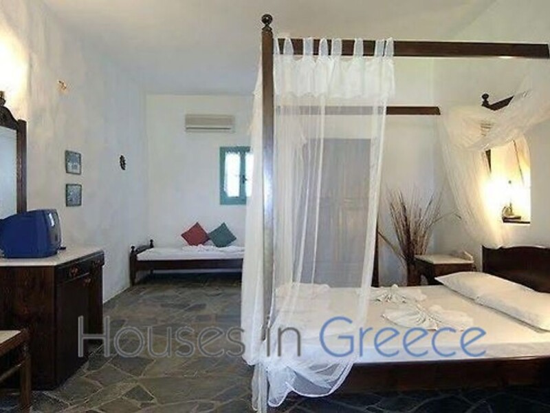 This hotel enjoys an exceptional location, situated a stone's throw from a beautiful sandy beach in a Natura 2000 protected area. The environment is enchanting: composed of dunes, cedars and small paths that lead directly to the sea. The hotel is located near the very beautiful and lively beach of Santa Maria and only 4 kilometers from Naoussa. The land of the property is 8542 m2. No property can be built nearby. The main building has an area of 492 m2 with 378 m2 on the ground floor and 105 m2 upstairs. The basement of the hotel (381 m2 ) consists of storage areas, laundry room, staff space…. Swimming pool of 131 m2 with deckchairs, breakfast area and bar. The 12 spacious traditional rooms with their pretty Cycladic terraces, the bougainvillea, the view of the infinite blue not to mention the unique location just 60 meters from the sea, give a particular glamor to this establishment and make it a unique and rare property. This property can undoubtedly also be transformed into a magnificent villa.