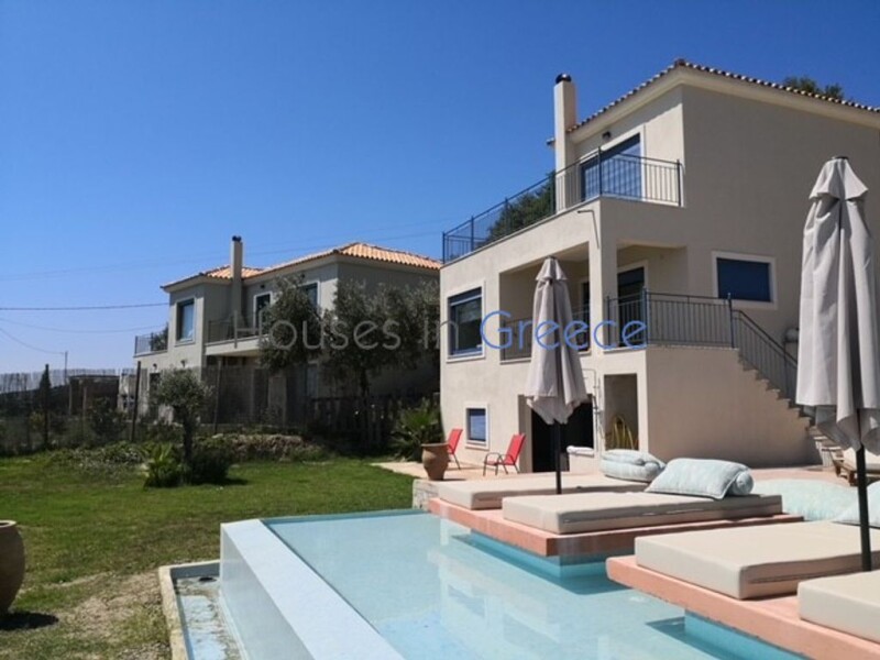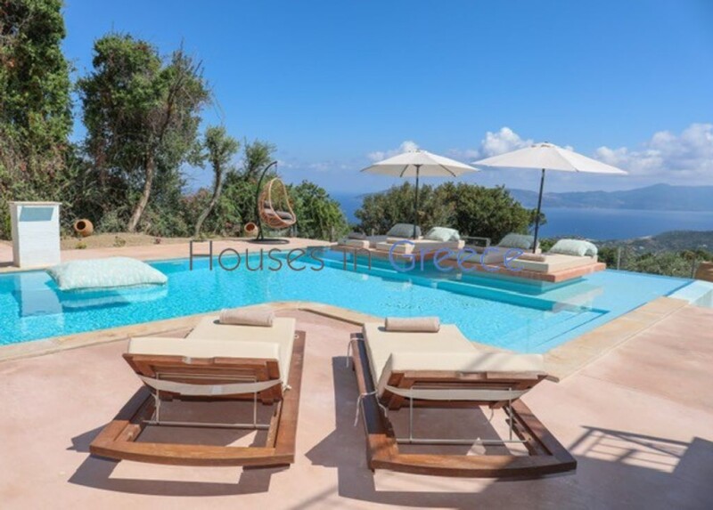 This beautiful villa with its breathtaking 180 degree view of Skiathos town and the blue sea with its surrounding islands on a plot of 1000m2 is about 2km from the harbour and also 2km from the airport. It consists of 3 levels, entering the house from the top level with a spacious living-dining area with fireplace and open plan kitchen and WC and a very large balcony where you can enjoy the most beautiful sunrises. A staircase leads to the other two floors with a total of 3 bedrooms with en-suite bathrooms and another balcony and large terrace in an ample garden with a pool including a 3-point hydromassage and water curtain system. Although only 2 km from the harbour, one enjoys absolute silence in a unique place.