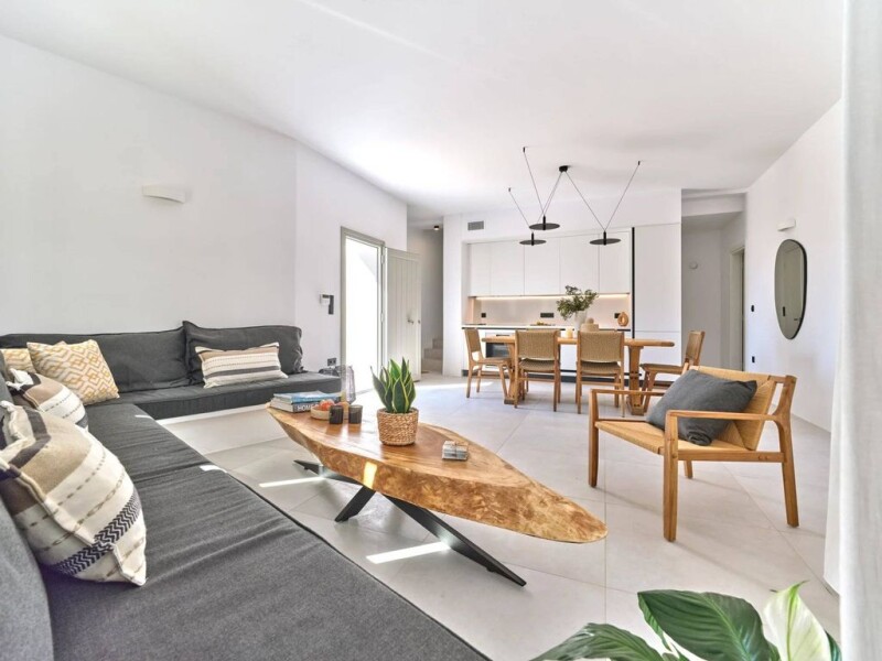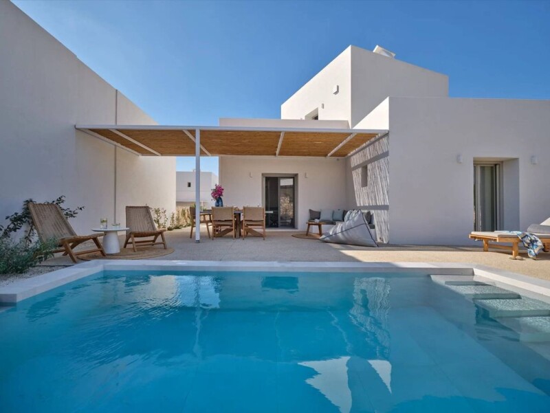 Step into elegance with this brand-new villa, completed in August 2024, offering high-end construction and Energy Class A efficiency. Nestled in a quiet residential area, just a short walk from beaches and all amenities, this home is designed for effortless island living. Key Features: - 300 sqm plot with a private swimming pool and an outdoor shower for refreshing post-swim moments - Bright and stylish living space on the ground floor, including a lounge, dining area, and a fully fitted kitchen with premium appliances: Built-in fridge, oven, hob, dishwasher, washing machine with dryer, extractor fan, Nespresso coffee machine & kettle - Two spacious bedrooms: - Ground-floor bedroom with a nearby shower room/WC - Master suite upstairs with an en-suite shower room and a private sea-view terrace - Large French windows open onto the landscaped garden and terrace with pool, creating seamless indoor-outdoor living - Lush Mediterranean garden featuring oleander, bougainvillea, rosemary, lavender, and olive trees - Sustainable & energy-efficient: equipped with a heat pump (hot/cold) and solar panels - Private parking space for convenience This house is sold fully furnished and equipped to a high standard – move in effortlessly and start enjoying your new home immediately. Prime Location: Enjoy the best of both worlds—tranquility in a residential setting while being just a short walk to beaches, shops, and restaurants. This exceptional villa is a turnkey luxury retreat in one of Paros' most desirable locations. Contact us today for more details or to arrange a private viewing!.