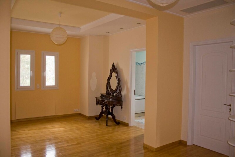 Large 3-storey villa with beautiful landscaped gardens, located in the area of Kommeno. This luxurious villa is situated next to the main street with beautiful sea view. The lower ground floor is a contained home, ready to live in. It features a fully fitted kitchen, a large comfortable open plan living room with dining area and fireplace, 2 bedrooms and 2 bathrooms. Behind the apartment there is another en suite bedroom. Also, store rooms and a boiler room. The ground floor features a kitchen, a big open plan living room with fireplace and a dining area. Also an en suite room. There is also an nice veranda measuring 3.5 m * 5 m, with sea view. The top level floor has three bedrooms with two bathrooms and large verandas with lovely sea views. The villa has central heating and floor heating, also has air condition units. There is also a lift connecting the three levels for easier access. The ground floor and the top level need some finishing works to be done. The villa has almost an acre of landscaped gardens with stone-built lake and a paved bridge, as well as many flowers, shrubs and plants. At the entrance there is a large parking space.