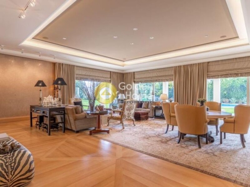 The mansion is located in the southern suburbs of Athens, in a beautiful spot with sea views. It is a building with classical aesthetics and proportions, adorned with updated Neoclassical elements, such as columns, ironwork, and other details. This style is particularly popular in Greece, as it draws inspiration from both the international Classical Revival and ancient Greek civilization. The property consists of a three-storey main building with a basement, a large pool, a poolside guesthouse, a BBQ area, and extensive outdoor living spaces. All of this is surrounded by a vast garden with lush green grass and tall trees. The central three-storey building includes: • the main house (3 levels), with large reception areas, a grand staircase, an office, a huge master suite, one VIP suite, one guest suite, playroom and gym areas, and a mini spa with a jacuzzi. • an independent "lofty aesthetic" suite (2nd floor) • an independent three-bedroom apartment (2nd floor) • independent staff quarters • a large parking area and other auxiliary spaces (basement) The mansion is designed for a modern lifestyle, suitable for large or extended families. It features all contemporary systems for comfort and technology (central A/C system, underfloor heating, etc.). The layout is based on functional plans, with airy and sun-filled rooms, spacious bathrooms, and large storage spaces (closets and walk-in wardrobes). It is ideal both for personal use, with well-designed suites and cozy seating corners, as well as for entertaining guests, with large living and dining areas both indoors and outdoors, designed to take full advantage of Greece’s excellent weather conditions. A sense of refined luxury permeates the spaces, emphasizing comfort without losing the human scale. High-quality materials, such as oak and marble floors, marble bathrooms, marble staircases, oak paneling, silk and raffia wallpapers, have been used throughout the mansion. In conclusion, the philosophy of this mansion is to offer a contemporary, relaxed, and comfortable life to its residents.