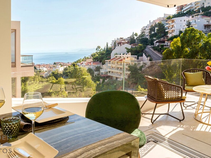 A stunning 3 level villa in the upper area of Voula is the ultimate luxurious residence. Offering panoramic sea and mountain views it provides a high quality living experience. This villa was built in 2019 by excellent quality materials in order to provide maximum comfort. This minimal design and modern interiors make this bright residence the ideal home. It consists of total 2 living room spaces, a kitchen, 2 master bedrooms with their private bathrooms and 4 wc. Both bedrooms enjoy direct access to large veranda with stunning sea view. There is, also, a private pool for extra relaxation. AMENITIES: Autonomous Underfloor Heating | Aluminium Frames | Double-glazed windows | Electric curtains | Wooden-Tile Flooring | AC | Security Door | Alarm System | Fireplace | Elevator | Terraces | Playroom | Underground parking spaces | Private Garden | Jacuzzi | Satellite TV | Storage room LOCATION: The great advantage of this residence is its amazing location; it is ideally situated in the Panorama, in Voula, a premium neighborhood of the Athenian Riviera. At the same time the residence is blessed with privacy because it is seated on a hill, on a quiet residential street. Furthermore, it is just a 7-minutes drive (2.8 km) to the beach, a 6-minute drive to Vasileos Pavlou Avenue (the center) and less than a 10-minute drive to Glyfada. Moreover, the spectacular view of this residence, in one of the most posh neighborhoods in Voula, can take your breath away. Almost all the rooms of this house overlook the sea and the whole Athenian Riviera. The Southern Suburbs of Athens have gained in popularity and they are well known as “the Athens’ Riviera”. Voula area, with new public constructions currently under development, is destined to become one of Europe’s most desirable and elite seasides to visit for tourists, investors and travelers. PROPERTY ID: 11-2211.