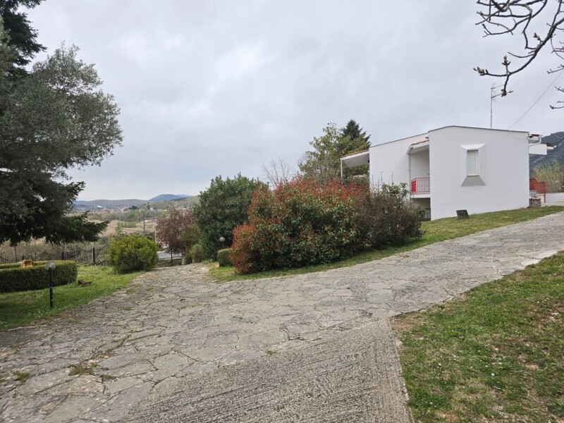 AMFITHEA IOANNINON, detached house of 200 sq m for sale on a plot of 2,550 sq m with an excellent view of the lake of Ioannina, the island and the city of Ioannina. The 2,550 sq m plot is within the plan, has additional building, with a building factor of 0.8 and can be used for construction for an additional residence, but also for professional use (hotel, boutique-hotel, rooms). The 200 sq m detached house is in excellent condition and immediately habitable and consists of 3 bedrooms, one with its own bathroom, kitchen, living-dining room with fireplace, a bathroom and a wc. There is a 200 sq m basement which serves as storage space and an oil boiler and with the appropriate renovation it can be converted into an additional house. Large and spacious outdoor area with lawn, trees, plants, paved entrance, ample parking and electric entrance door. The house has an amazing view of the lake of Ioannina from all indoor and outdoor areas, it is located above the main road in Amfithea, very close to the city and the Ioannina Airport. Ideal for permanent residence, but due to the additional construction of the plot it can be transformed into a commercial property. SALE PRICE: 580,000 EUROS PROPERTY CODE: P-708.