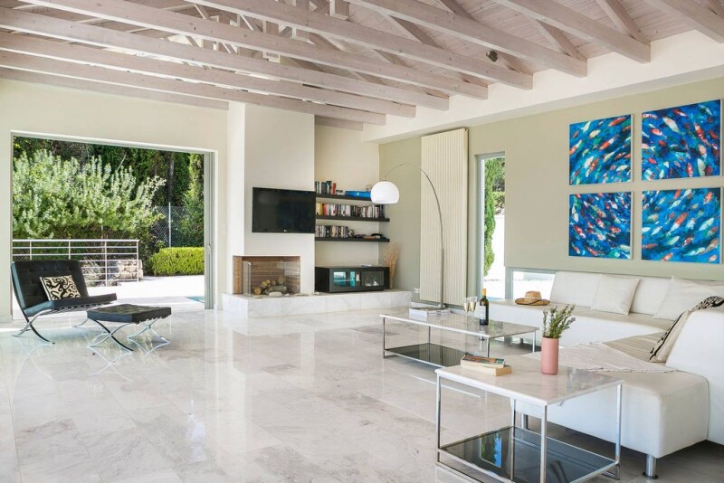 A sophisticated, modern villa with clean lines and harmonious interiors which blend well with the scenic views of blue sea and sky. An immediate sense of well being and calm is created by the simplicity of design and cool tones of the decor. Aloni boasts 220 m2 of living space, incorporating open plan design and floor to ceiling windows allowing the interiors to fully enjoy the priceless sea views of both the mountains and coastline. Accommodation is complete with 3 modern ensuite bedrooms with large patio windows overlooking the spectacular island views. Outside, to accommodate with enjoying the Greek lifestyle further and take full advantage of the glorious weather, a stunning infinity pool and and outdoor kitchen with B.B.Q with ample space to enjoy entertaining family and friends and dining alfresco. Aloni and its position is best described as a sanctuary to unwind and leave your worries behind whilst being close to beaches and within easy reach of the local tavernas and shops in the charming harbour of Fiskardo.