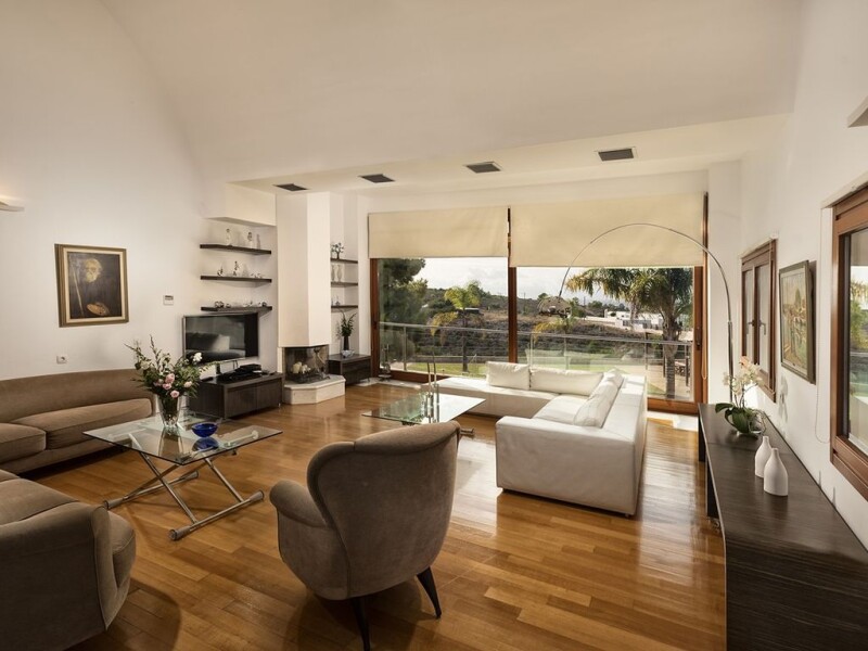 This property consists of two luxury villas for sale in Akotiri Chania Crete. They are located in the area of Kampani close to the beach of Kalathas and they are built on a 4500 sqms private plot of land and each of them has got 220 sqms of living space. These twin villas comprise of the same living areas such us sitting room, dinning room, kitchen, 3 bedrooms and 3 bathrooms. There is also an extra studio with a bedroom and one bathroom available for each villa, which can be either connected to the villa or it can be totally independent with a separate entrance. Due to the fact that the plot is gradient, the villas enjoy panoramic views of Kalathas gulf and the mountains. Luxury, high quality, convenience and privacy are the main characteristics of these villas. Both of them share a fully landscaped garden of 3060sqms in total, the swimming pool and its surrounding with a surface of 340sqms, the BBQ, the outdoor kitchen and the covered parking space, which can accommodate 5 cars. Sunbathing Area Barbecue Balcony with sea view Garden Sunbeds, Parasols Garden Table & Chairs Beach nearby Fitted kitchen Fully landscaped gardens Garage Garden irrigation system Grass lawns Insect screens Outdoor dining area Sea View Solar water heating panel Stone boundary walls Window shutters Air-Conditioning Private parking area Internal Light Fixtures Sun terrace Wooden pergolas Fireplace Covered Parking Stone driveway Lift/Elevator Electronic entrance gates Italian floor tiling Barbecue, Veranda Garden, Outdoor Furniture Balcony Pergola covered outdoor dining area.
