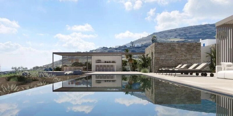 Amenities and special features of this house Introducing an elegant 267-square-meter villa in the captivating Golden Beach area of Paros, with an additional 32 square meters dedicated to a gym and storage. Sited on a grand 4,000-square-meter property, this architectural marvel ensures complete privacy, yet remains close to essential amenities. Inside, you’ll find four luxurious master bedrooms, each with an ensuite, exhibiting unmitigated grandeur. The villa is outfitted with state-of-the-art heating and cooling system, water filtration and storage, smart home technology, and an upscale chef's kitchen. The open concept design, coupled with an independent, equally sophisticated guest house, adds to its appeal. Outdoors, an impressive swimming pool network, including a private pool for the main master suite, offers relaxation and fun. An outdoor BBQ and Pizza Oven and fireplace area present the perfect setting for unforgettable gatherings. The villa’s elevated positioning provides breathtaking vistas of BlueFlag Golden Beach and six stunning islands. All are readily accessible, as the villa is conveniently located near pharmacies, supermarkets, taverns, and 5-star hotels, effortlessly uniting seclusion and convenience. Tzanes: Location and surroundings of this property Golden Beach, also known as "Chrissi Akti" in Greek, is located on the beautiful island of Paros in the Cyclades island group in Greece. Situated on the southeastern coast of Paros, it is approximately 23 kilometers away from Parikia, the island's main town and port, and 13 kilometers from the picturesque fishing village of Naoussa. Golden Beach is famous for its long stretches of golden sand, crystal-clear turquoise waters, and gentle breezes. The beach spans around 700 meters and is surrounded by lush green hills, creating a perfect serene backdrop for relaxation and sunbathing. Along with its stunning views, the beach offers a variety of water activities such as windsurfing, kitesurfing, paddleboarding, and snorkeling. In fact, Golden Beach is a popular destination for windsurfing enthusiasts, hosting annual international windsurfing competitions. The beach is well-organized and offers numerous facilities like sun loungers, umbrellas, beach bars, and small taverns serving delicious traditional Greek cuisine. For those looking for a place to stay, there are a variety of accommodations available, including hotels, apartments, and holiday homes, suiting different budgets and preferences. Golden Beach is easily accessible by car, motorbike, or local bus from Parikia and Naoussa, making it a must-visit spot for any traveler seeking relaxation, adventure, and the essence of the Mediterranean charm Paros offers.