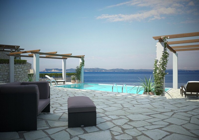 SYVOTA THESPROTIAS for sale under construction luxury villa 178 sq.m. with a "private" small beach in front of it. The villa is on three levels and consists of 4 bedrooms, 3 bathrooms, living room, kitchen and an outdoor area with a private pool and an unlimited view of the sea and the island of Corfu. The villa has private parking and storage space and its own landscaped plot in the olive grove. Exceptional and luxurious construction materials with the possibility of choosing from a list of materials with real stone masonry. The villa is first on the sea and at 50m a private path leads to a private small beach. Very close to the settlement in Syvota, it is an ideal property for a country house, but also a very good investment-seaside property. For luxury living leases with high rental rates and fast buyer capital amortization The villa is part of a complex with a total of four villas. SALE PRICE: 850,000E.