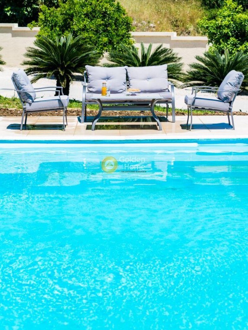 From the heart of the area rises an elegant 3-storey building with tastefully furnished 4 luxurious rooms and 1 master suite, offering spectacular views of the forest, gardens and the blue Mediterranean Sea. This air-conditioned villa comes with a large kitchen, a dining area, a seating area, fireplace sitting area and flat-screen TVs. Villa can accommodate up to 9 persons (plus 1 infant free). The villa is surrounded by citrus and orange trees and palms, which is extended to a little private forest with pine trees and cypresses. It has a private parking in the property and various garden areas. There is private outdoor swimming pool (9x4x1,5m) with comfortable sun loungers, forestry sitting area and also a lovely outside dining area for warm summer evenings. The villa has large spacious terraces and balconies with various outdoor sitting corners and magnificent views. This villa is also in a great location for an off season visit to the Island of Rhodes as the house has full central heating and an open fire place for the winter months.