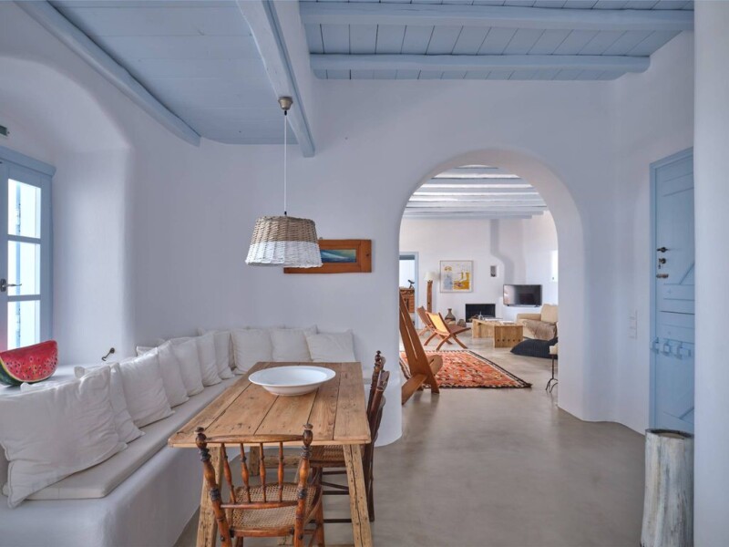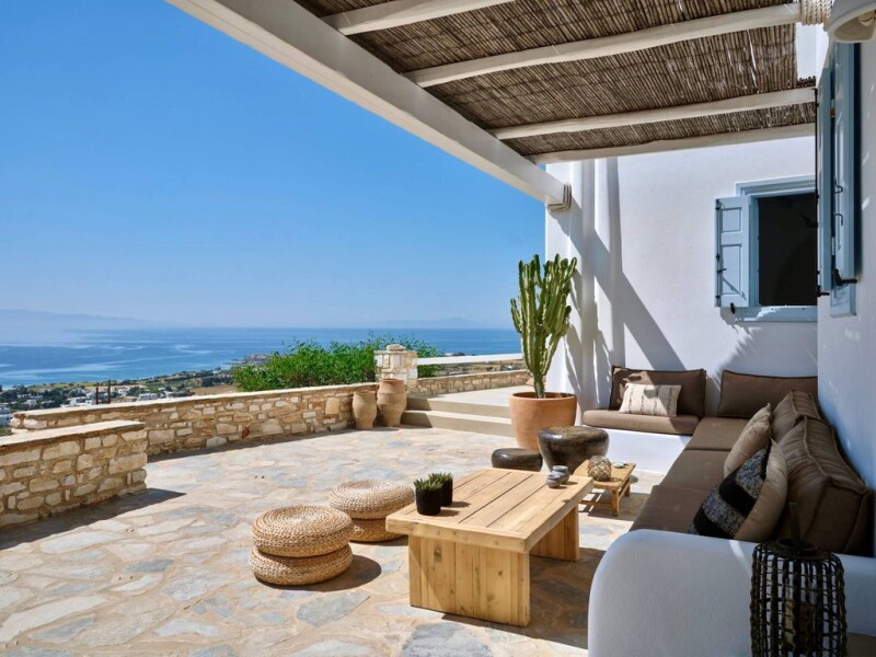 Nereida encapsulates everything an island villa should. Close to sandy beaches and picturesque seaside villages, it offers complete privacy and breathtaking views of the Aegean sea. This traditional stone villa is about Mediterranean summer living at its best. With all the modern comforts it invites you to slip off your shoes and settle into your very own island home away from home. Nereida shows off its chic island architecture which integrates beautifully with the Parian landscape. Soothing colors of dreamy blue, soft cream and white play well through the spaces to evoke a relaxing feeling. Minimal design style and large openings give way to stunning panoramic views over the island and the shimmering lights of distant Naxos. Standout features in the main living areas are Cycladic inspired curved walls, arched passageways and exposed wood beamed ceilings that convey warmth and charm to the living areas. From the bedrooms you can walk out onto cozy verandas and take in the scenery while reading your favorite summer novel. It’s easy to relax and entertain in Nereida’s outdoor living areas. The infinity pool is surrounded by shaded pergolas and daybeds where families and friends can enjoy a delicious summertime meal prepared on the outdoor barbeque. Those looking for more down time will appreciate serenity by the poolside after a refreshing morning dip. The gardens give a verdant tone accented by those hot pink flowering bougainvilleas. Nereida also offers a guest house ready to accommodate your visitors. The villa is situated within walking distance of the seaside village of Drios and its beach and is just a short drive to the golden sands of Chrisi Akti beach. The buyer of this property is eligible for the Greek Golden Visa Program.