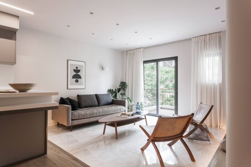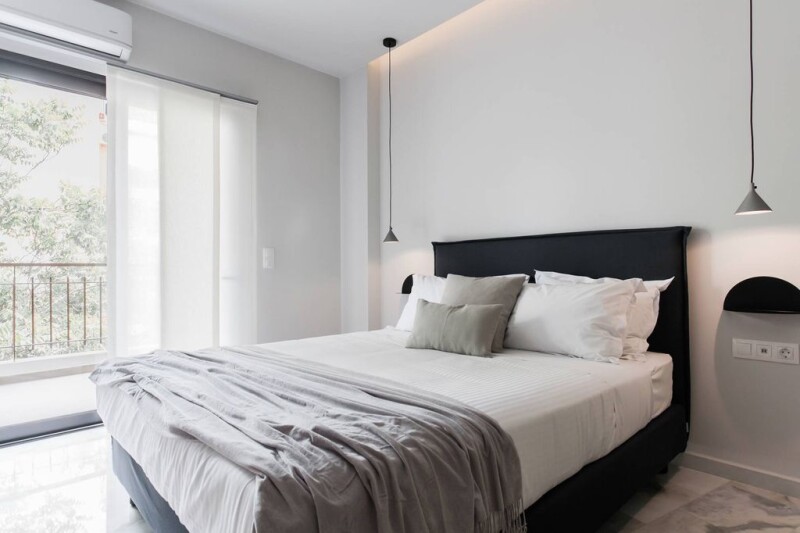 This fully renovated, second floor apartment in the heart of Athens offers a calming retreat amidst the vibrant city. The design of Opalia incorporates chic black, white, and natural detailing, creating a refined, modern, and luxurious ambiance. The carefully thought-out layout maximizes the use of space, providing a comfortable and functional living environment. The open-plan living and dining area leads into the well-equipped kitchen, which includes plenty of storage space and built-in appliances. Floor-to-ceiling windows allow natural light to fill the apartment and built-in air conditioning will keep you cool during hot summer days. Opalia features two comfortable and elegant bedrooms, and two stylish bathrooms with wood and black detailing and a beautiful glass shower. Opalia is an ideal starting point for exploring the colourful Greek capital, which masterfully melds its historical heritage with a cosmopolitan vibe. The metro station and the Museum of Contemporary Art are just across the street, while the Acropolis of Athens, the historical Plaka area, the National Garden, the sophisticated Kolonaki neighborhood and the avant-garde Koukaki area are walking distance.